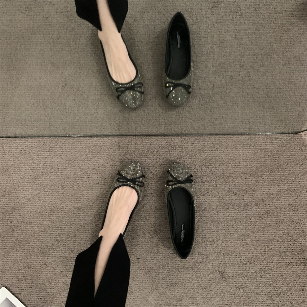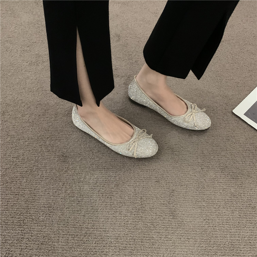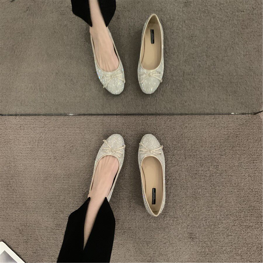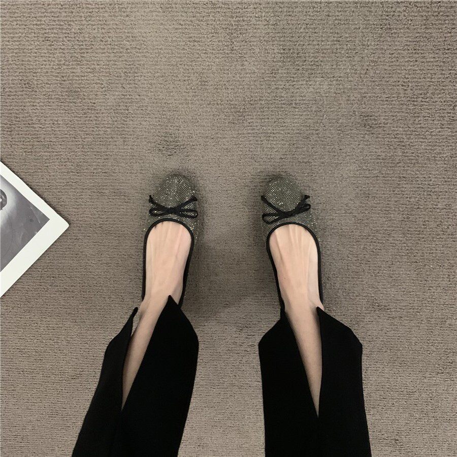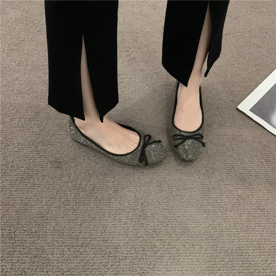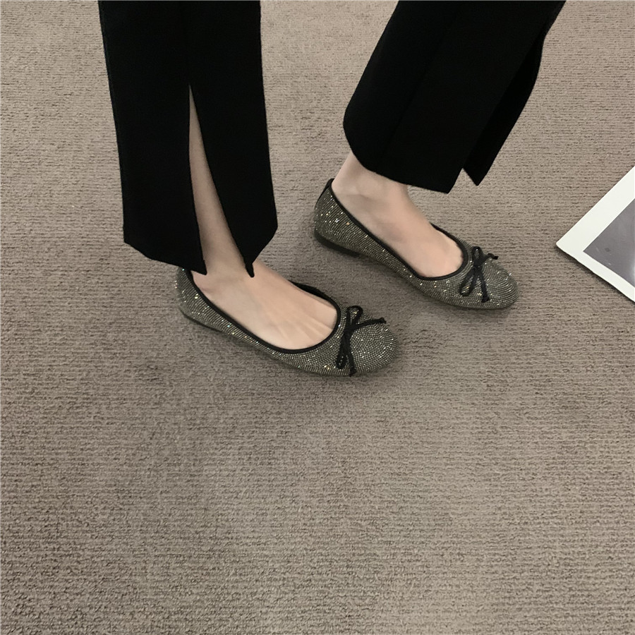 Плоская подошва обувь с бантиком с низким вырезом, французский стиль, в стиле Шанель, в корейском стиле