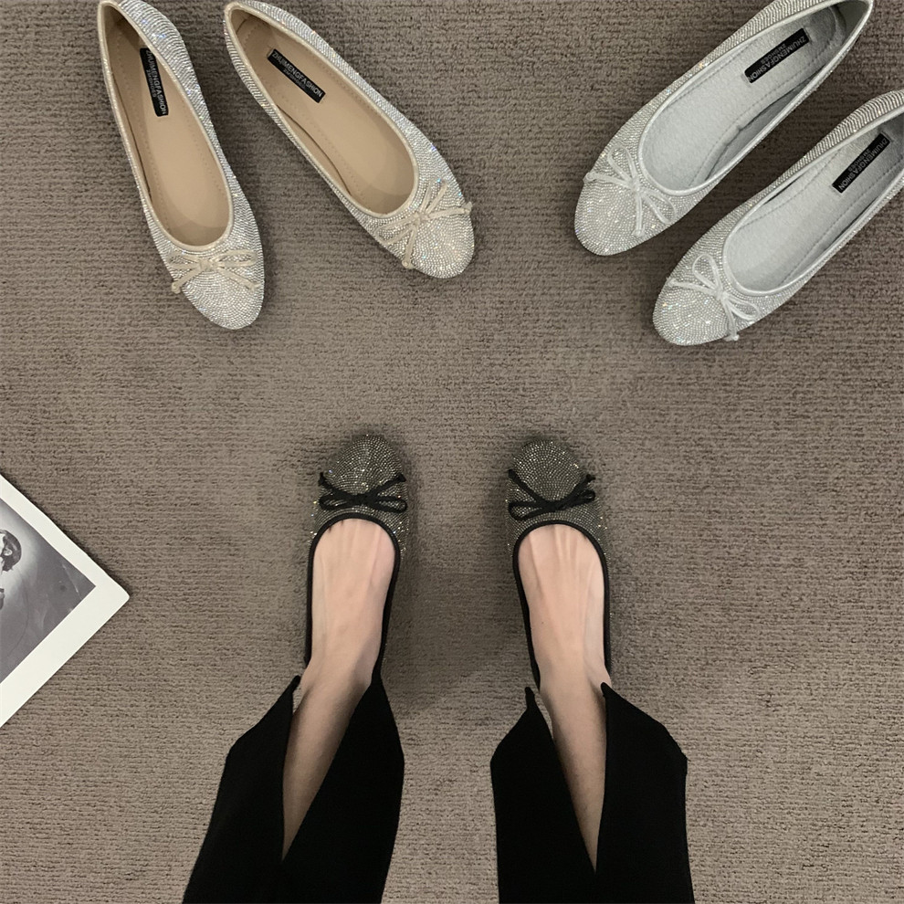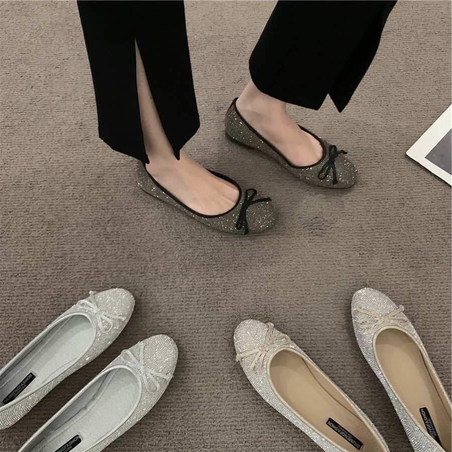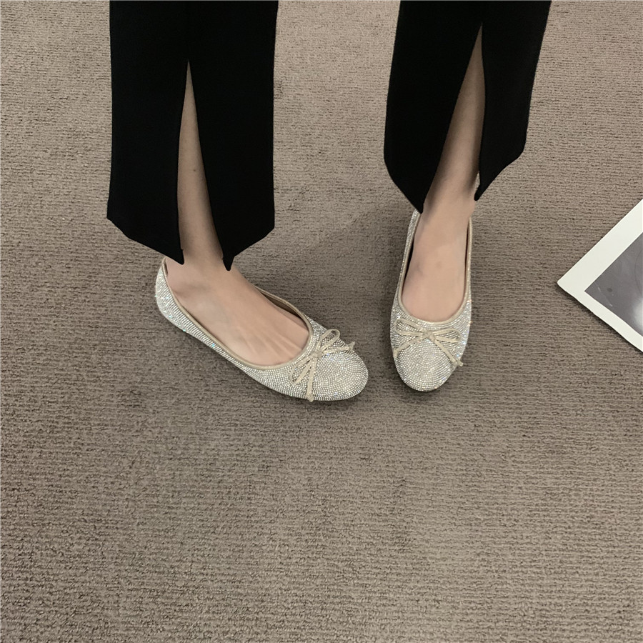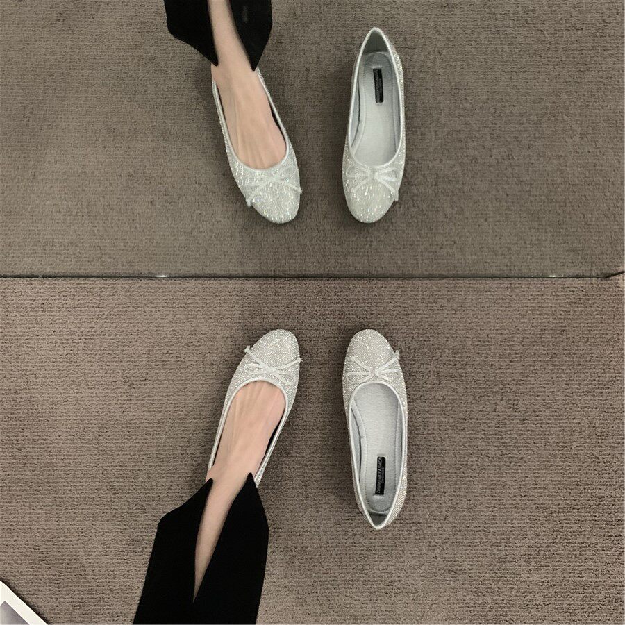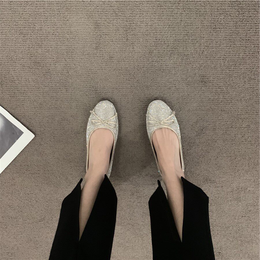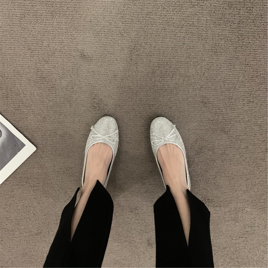Плоская подошва обувь с бантиком с низким вырезом, французский стиль, в стиле Шанель, в корейском стиле