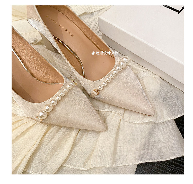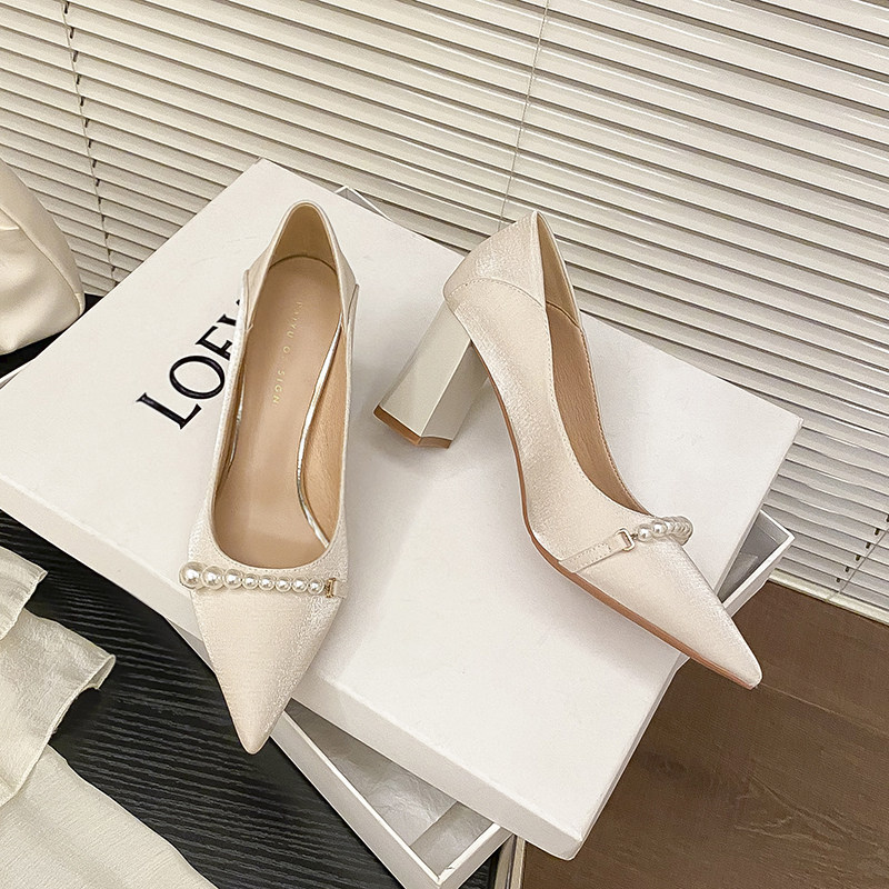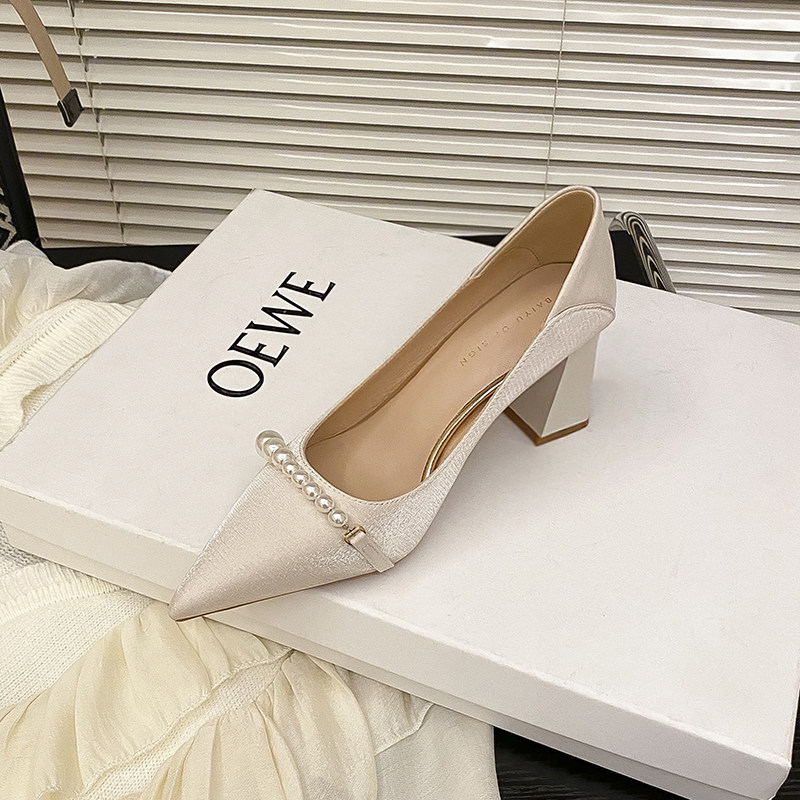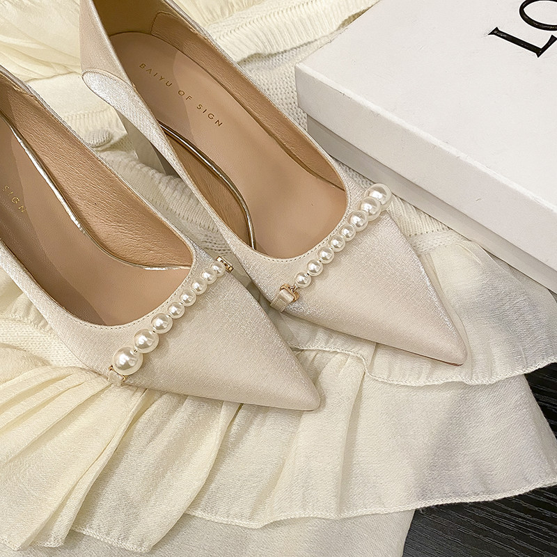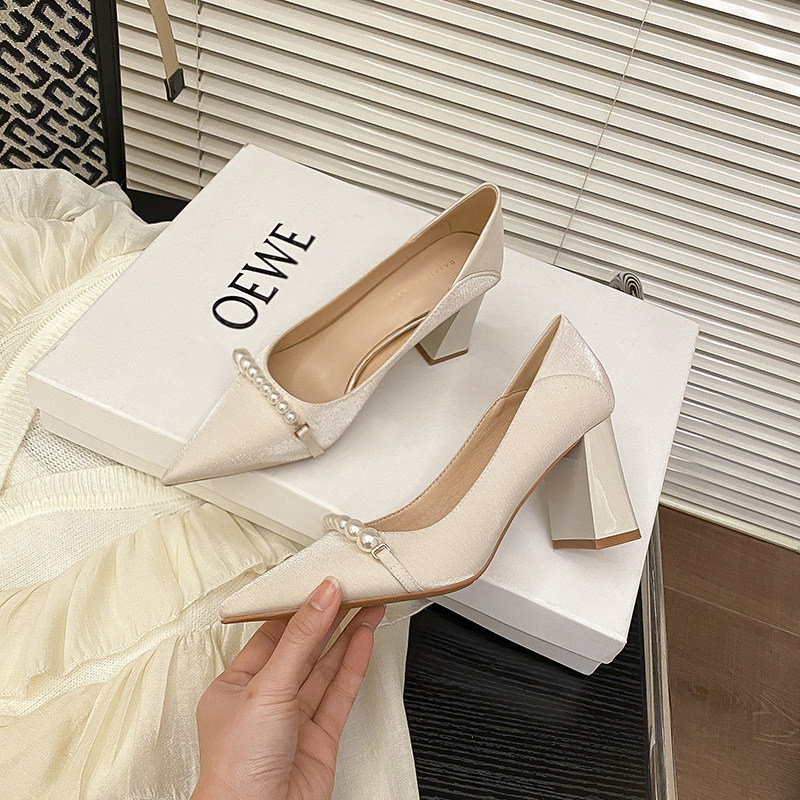 Универсальная белая обувь с заостренным носом на высоком каблуке, 7см, коллекция 2023, против усталых ног, мягкая подошва, французский стиль, для подружки невесты