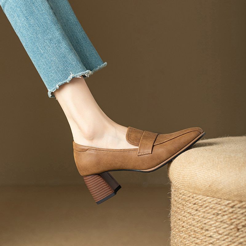 Лоферы в английском стиле на высоком каблуке для кожаной обуви, обувь, французский стиль, 6см