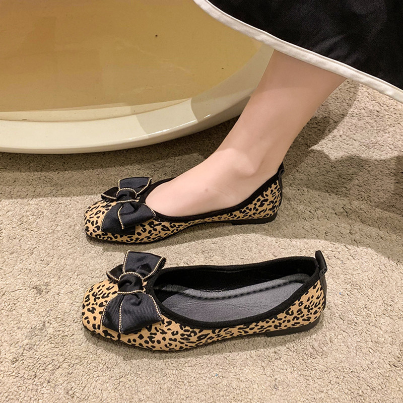 Квадратные носки покрыты древние леопардовые бобы бобов для женщин 2025 весна новая бабочка.