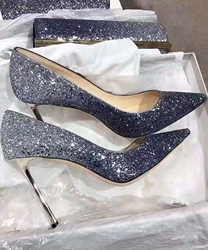 Черная весенняя металлическая модная универсальная обувь на высоком каблуке с заостренным носом
