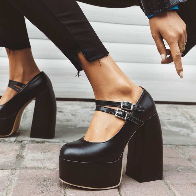 Белый ретро -ретро Мэри Чжэнь обувь женская густая пятка с высоким содержанием ветра высокой высоты