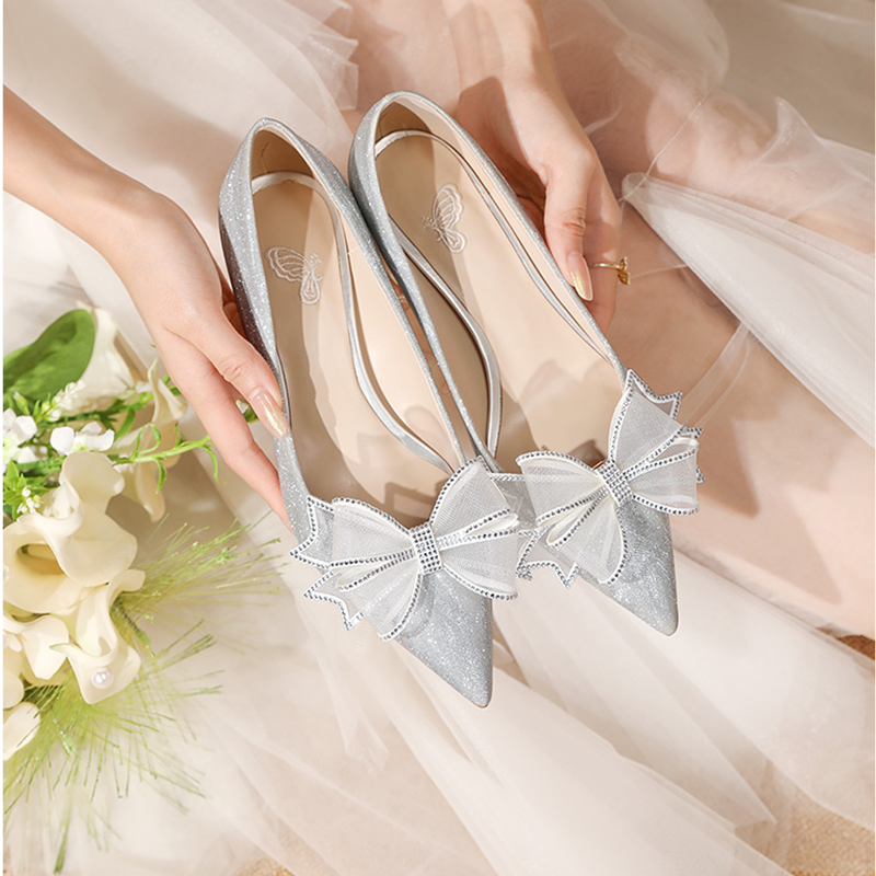 Свадебные туфли, цветная обувь со стразами для невесты на каблуке, против усталых ног, цвета шампанского, изысканный стиль