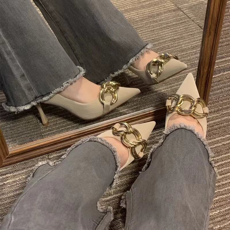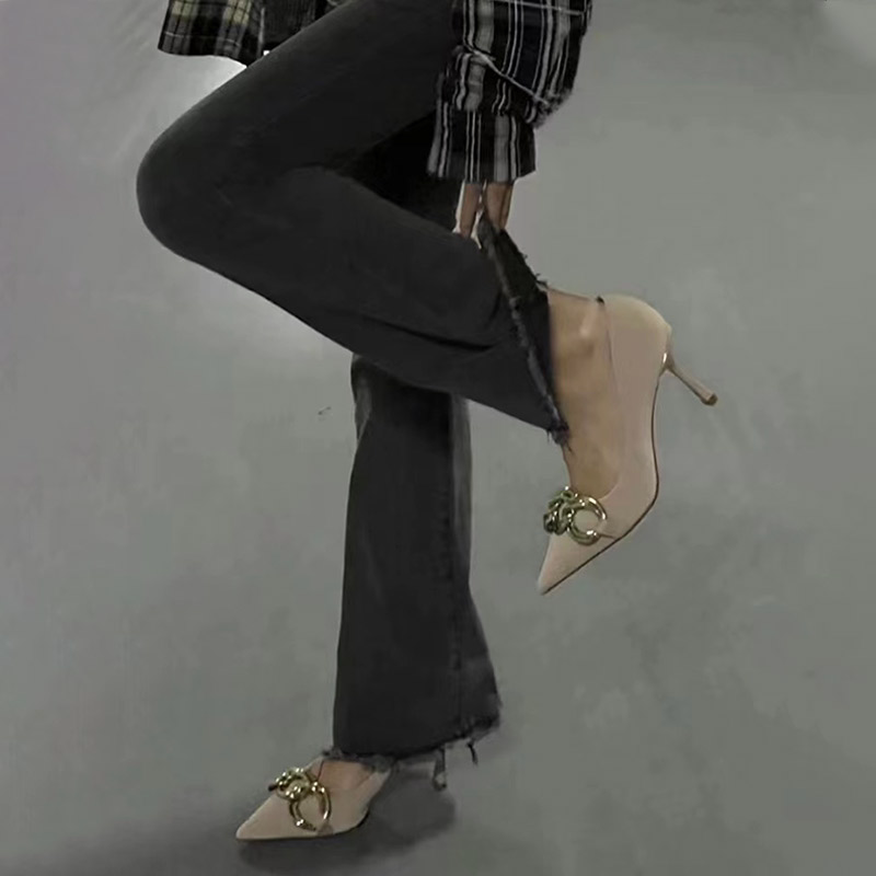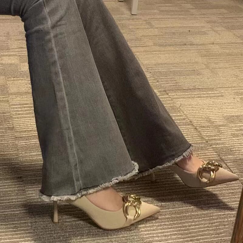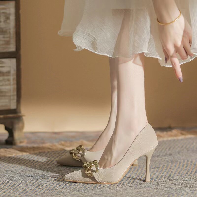 Нюдовая сексуальная обувь на высоком каблуке с заостренным носом для принцессы, 2024 года, французский стиль, против усталых ног