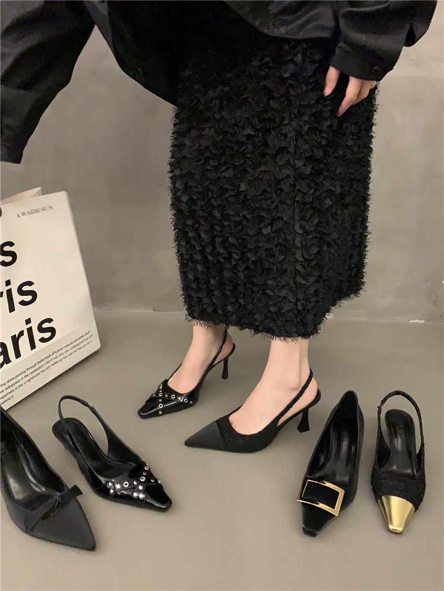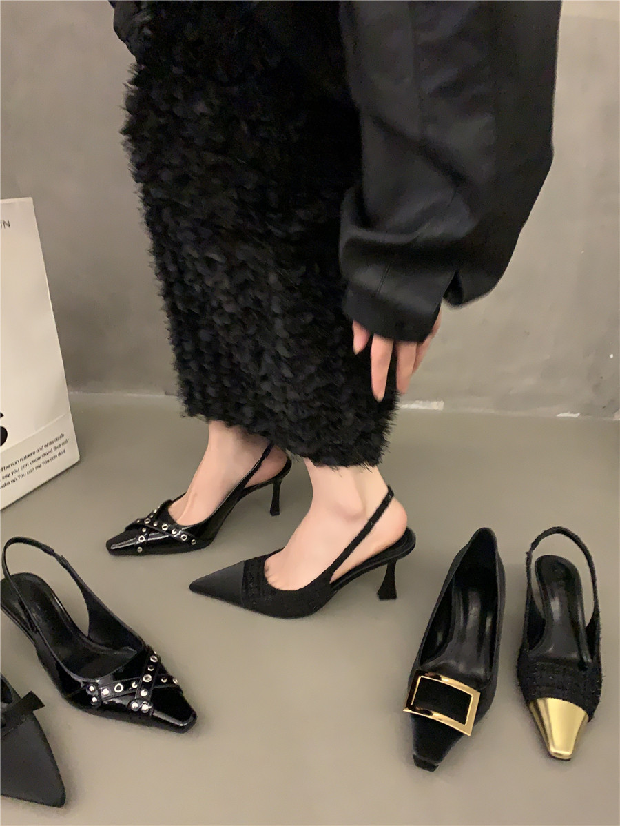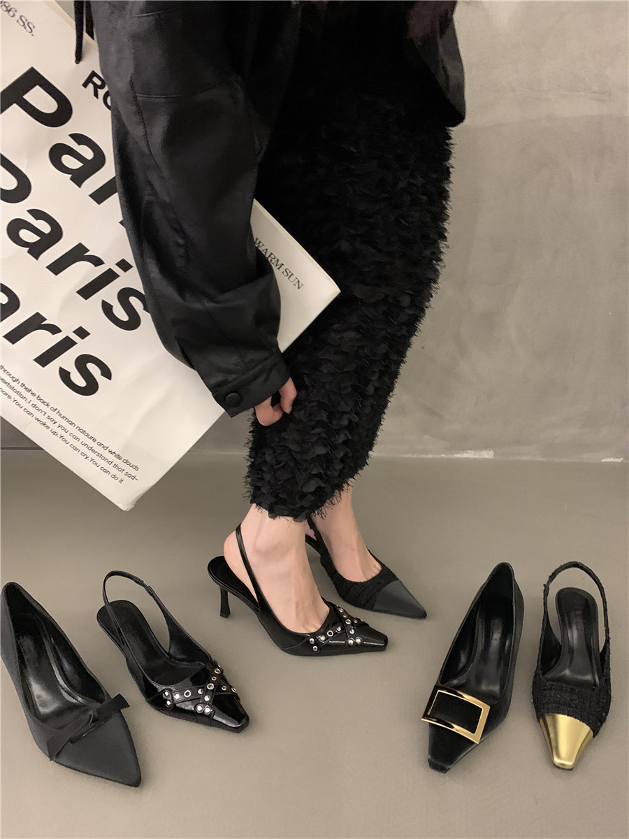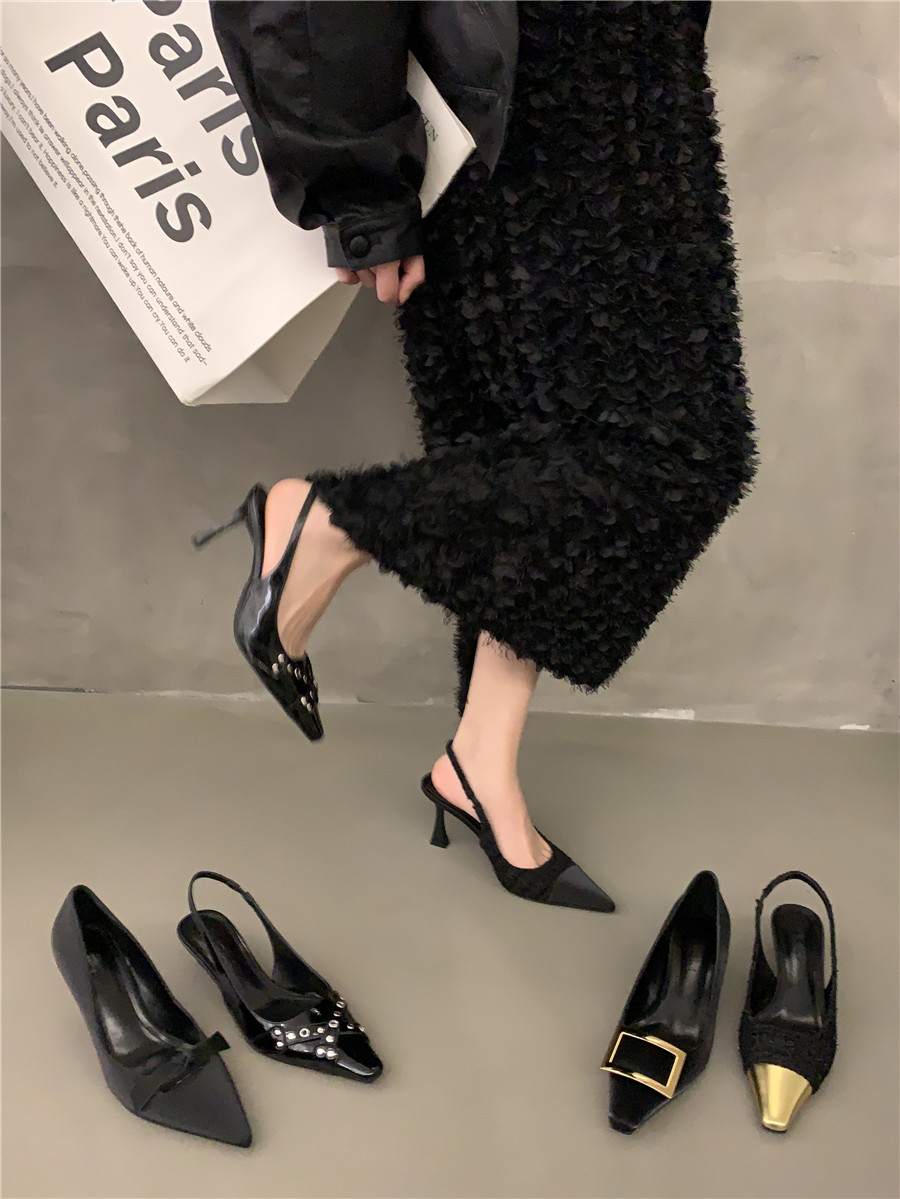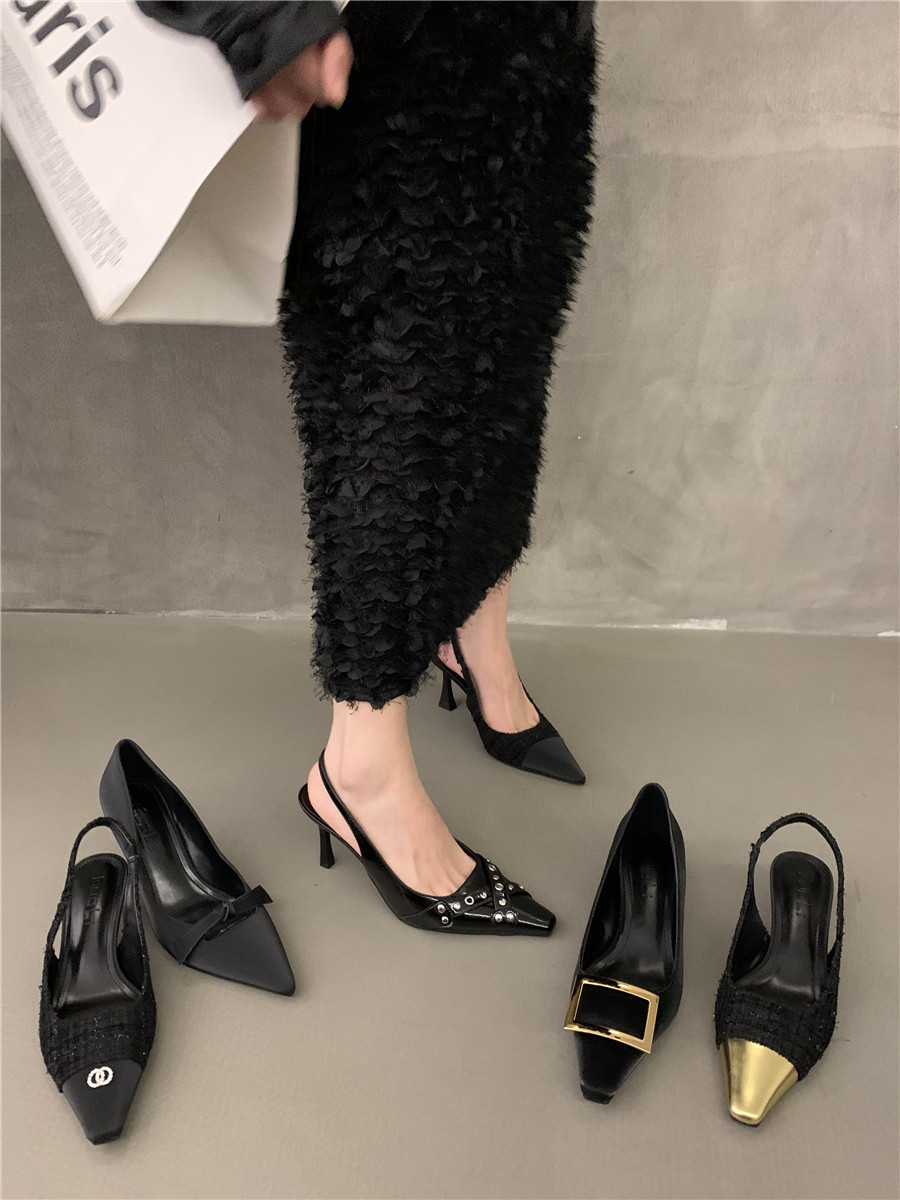 Высокие небольшие туфли на высоком каблуке, обувь с заостренным носом, сандалии, французский стиль, яркий броский стиль