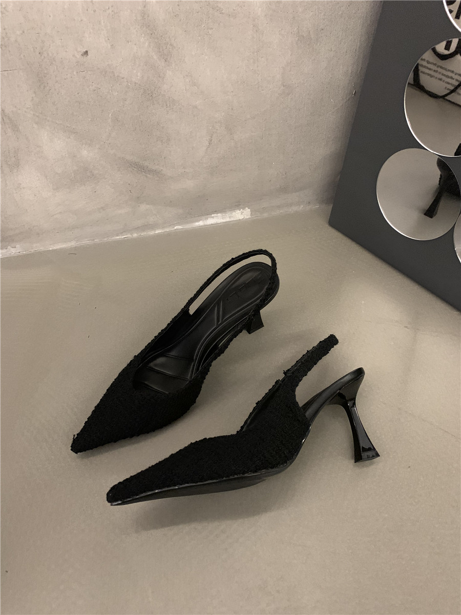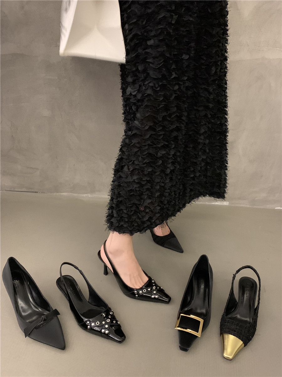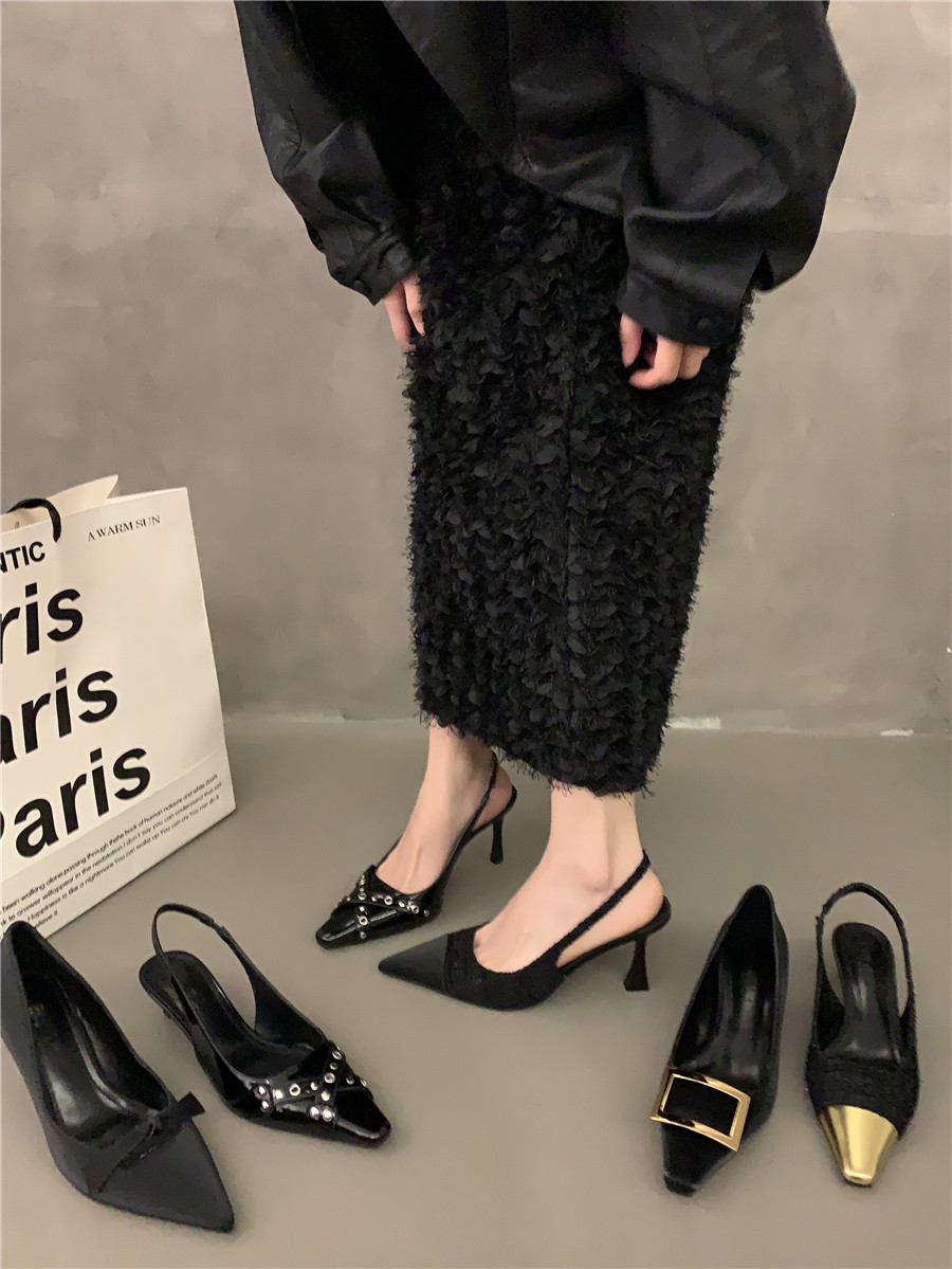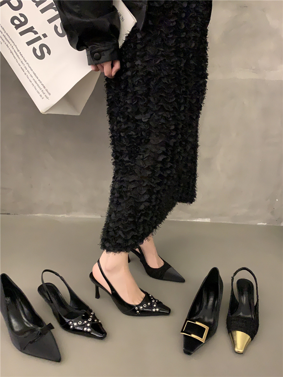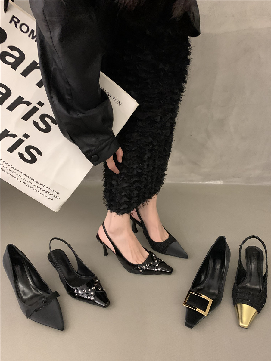 Высокие небольшие туфли на высоком каблуке, обувь с заостренным носом, сандалии, французский стиль, яркий броский стиль