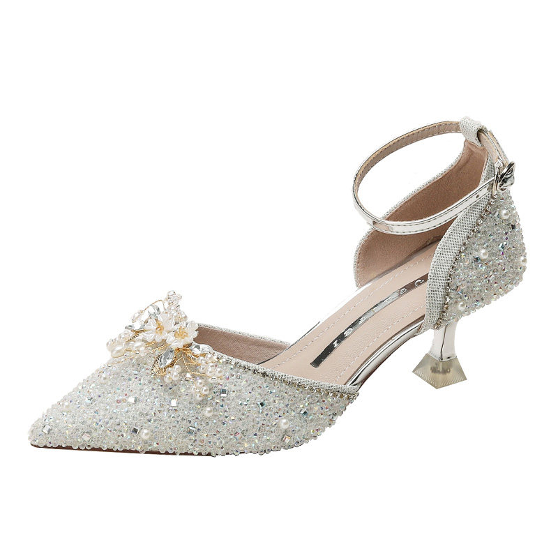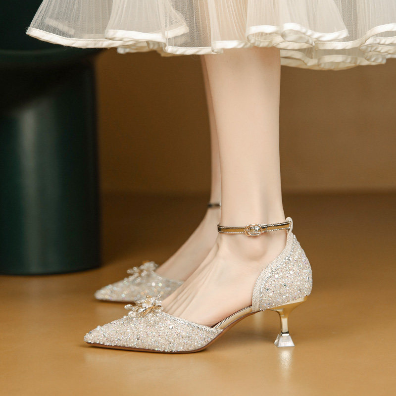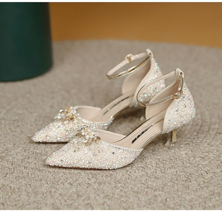 Обувь на высоком каблуке, свадебные туфли, блестки для ногтей, сандалии, французский стиль, новая коллекция, в цветочек, для подружки невесты