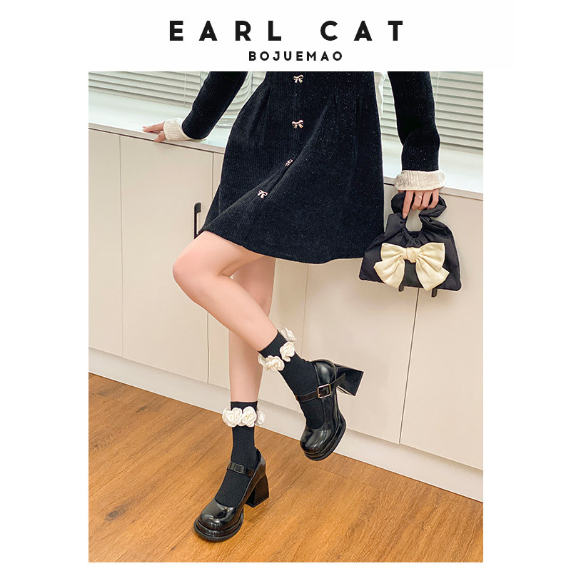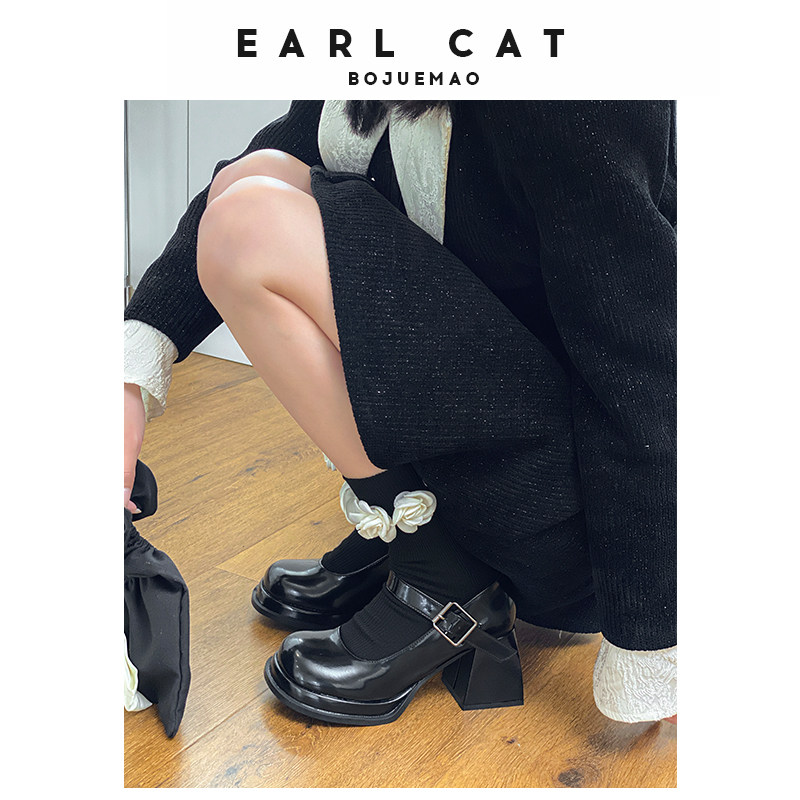 伯爵猫 Высокие туфли для кожаной обуви, демисезонная высокая обувь, из натуральной кожи, французский стиль