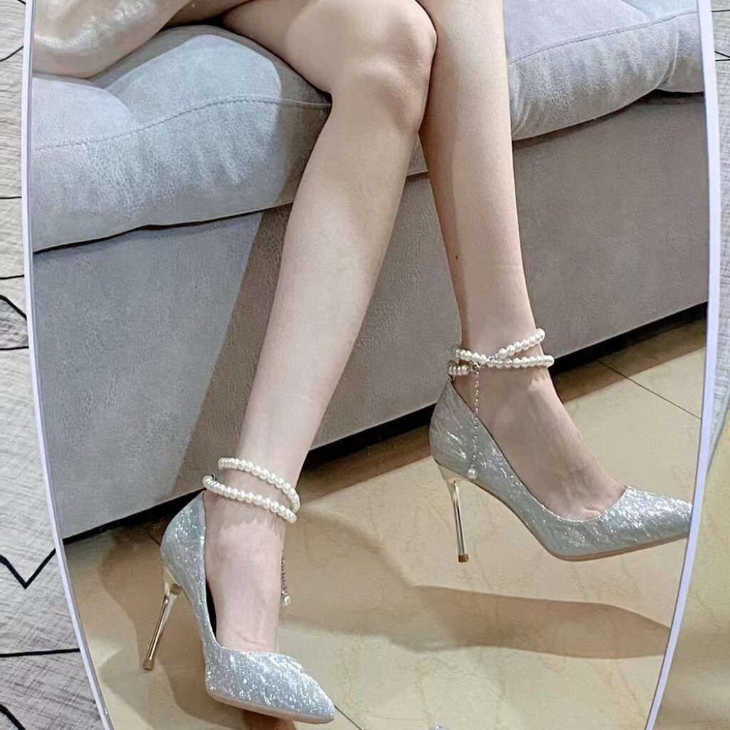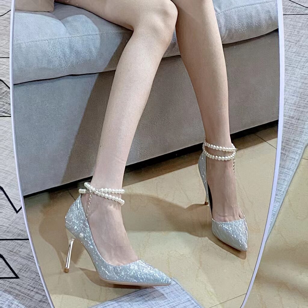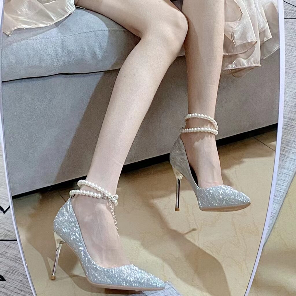 Серебряная обувь на высоком каблуке, свадебные туфли, коллекция 2023, для подружки невесты, 18 лет