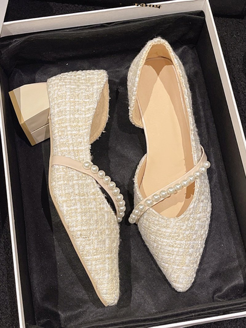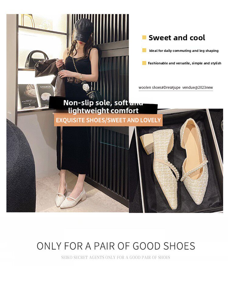 Туфли с заостренным носом, обувь на высоком каблуке для кожаной обуви, в стиле Шанель
