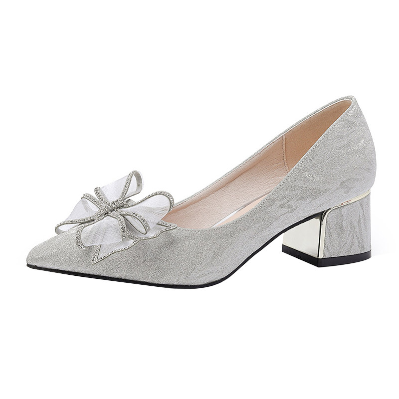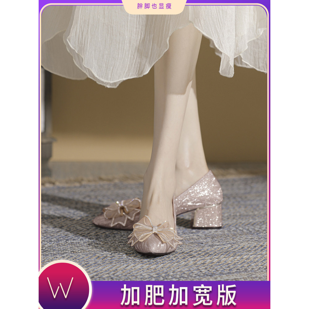 Свадебная обувь на высоком каблуке с широкой стопой и толстыми ногами. Новинка 2024 года. Женские туфли большого размера от 41 до 43. Туфли на одной платформе с бантом. Туфли на толстом каблуке с кристаллами.