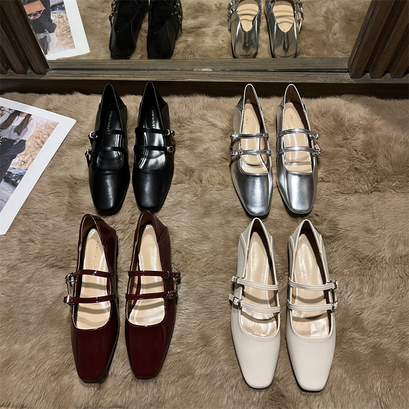 Гигантские мягкие и удобные 2025 весна новая двойная пряжка квадратная квадратная квадратная пятка