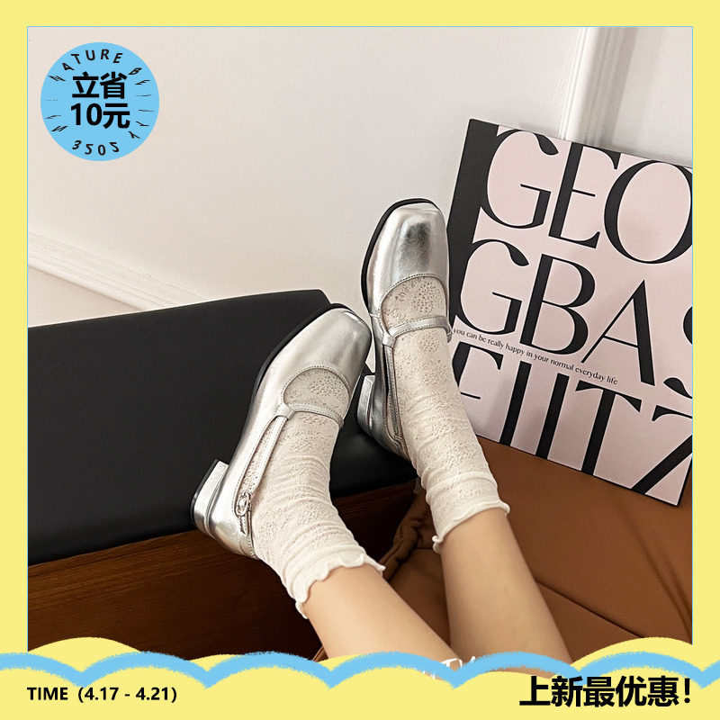 Серебряная весенняя обувь с низким вырезом, 2023, французский стиль
