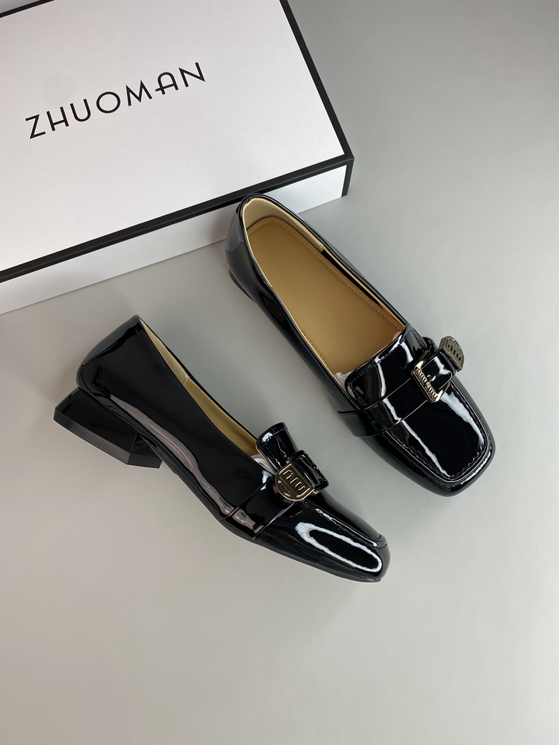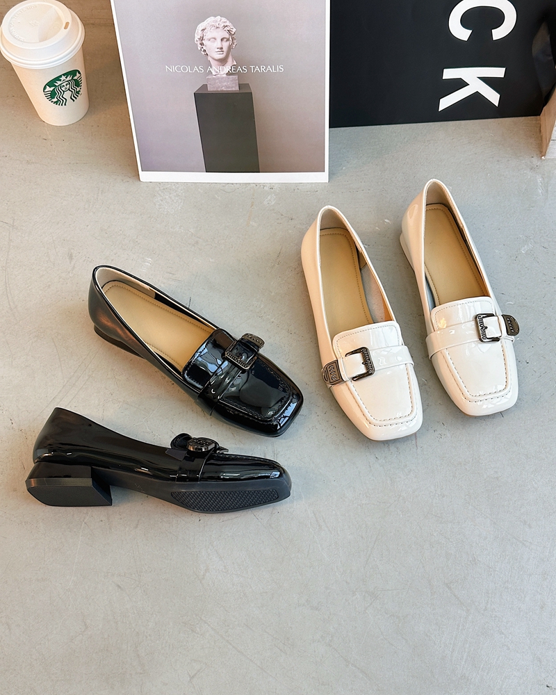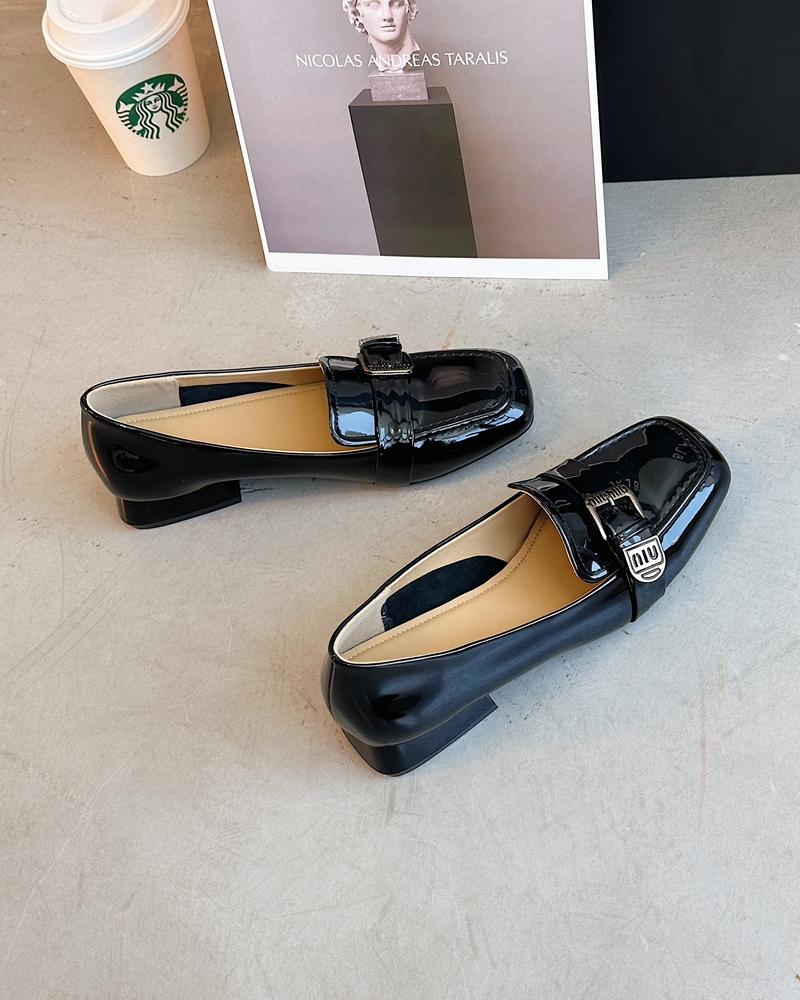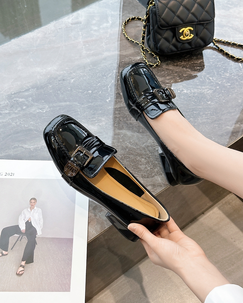 Z33 0420 Star Offline 899 Французская элегантная металлическая пряжка грубая квадратная каблука овечья кожа одиночные туфли самка