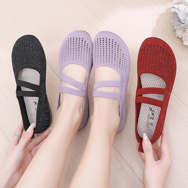 Летние слипоны, тонкая сетчатая комфортная спортивная обувь для матери, мягкая подошва, для среднего возраста