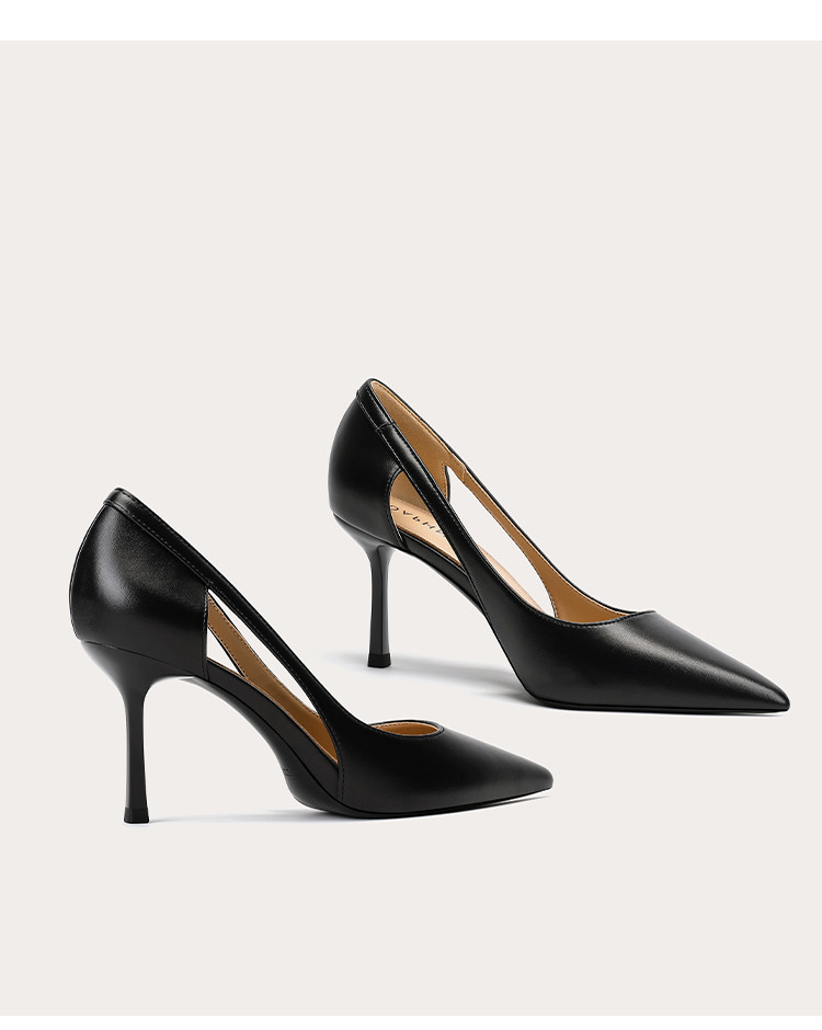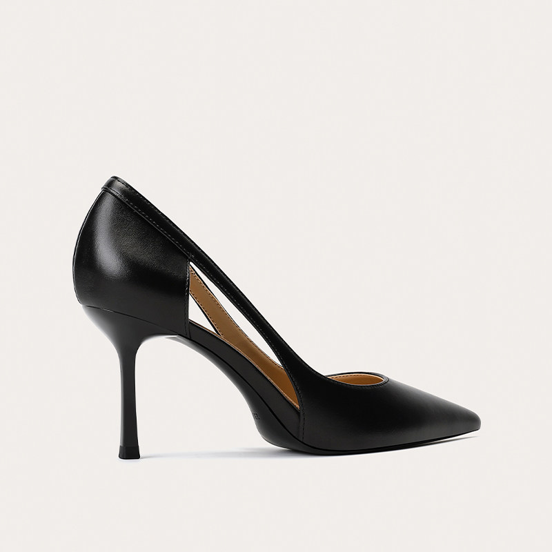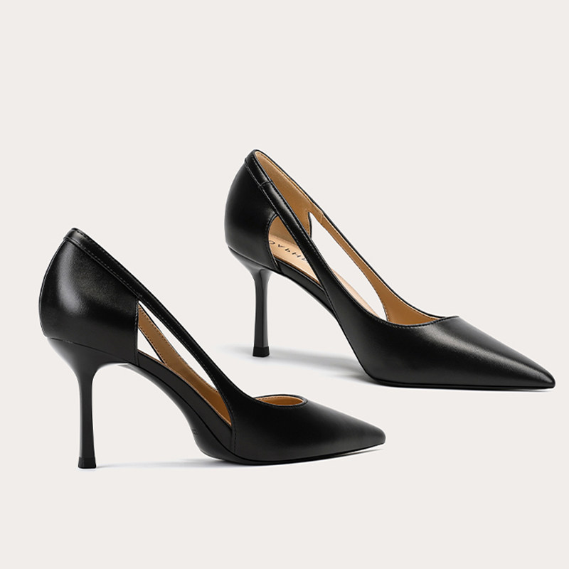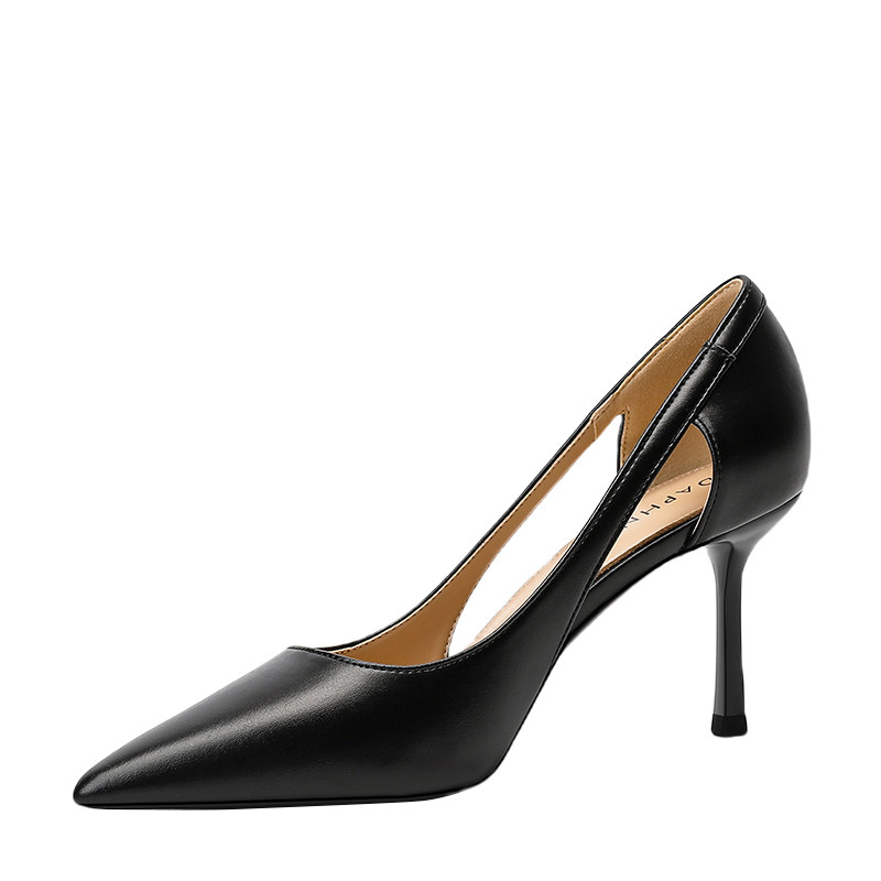 Летняя черная сексуальная обувь с заостренным носом на высоком каблуке