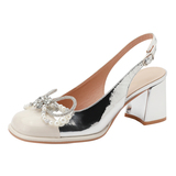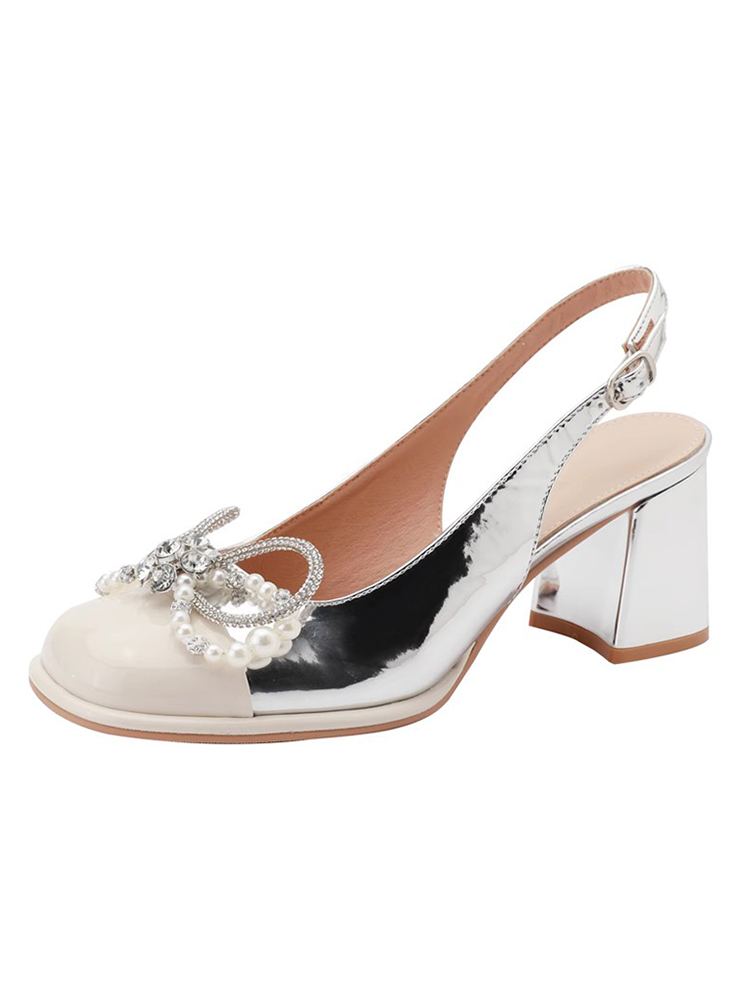 Серебряная обувь с бантиком на высоком каблуке, сандалии, коллекция 2023