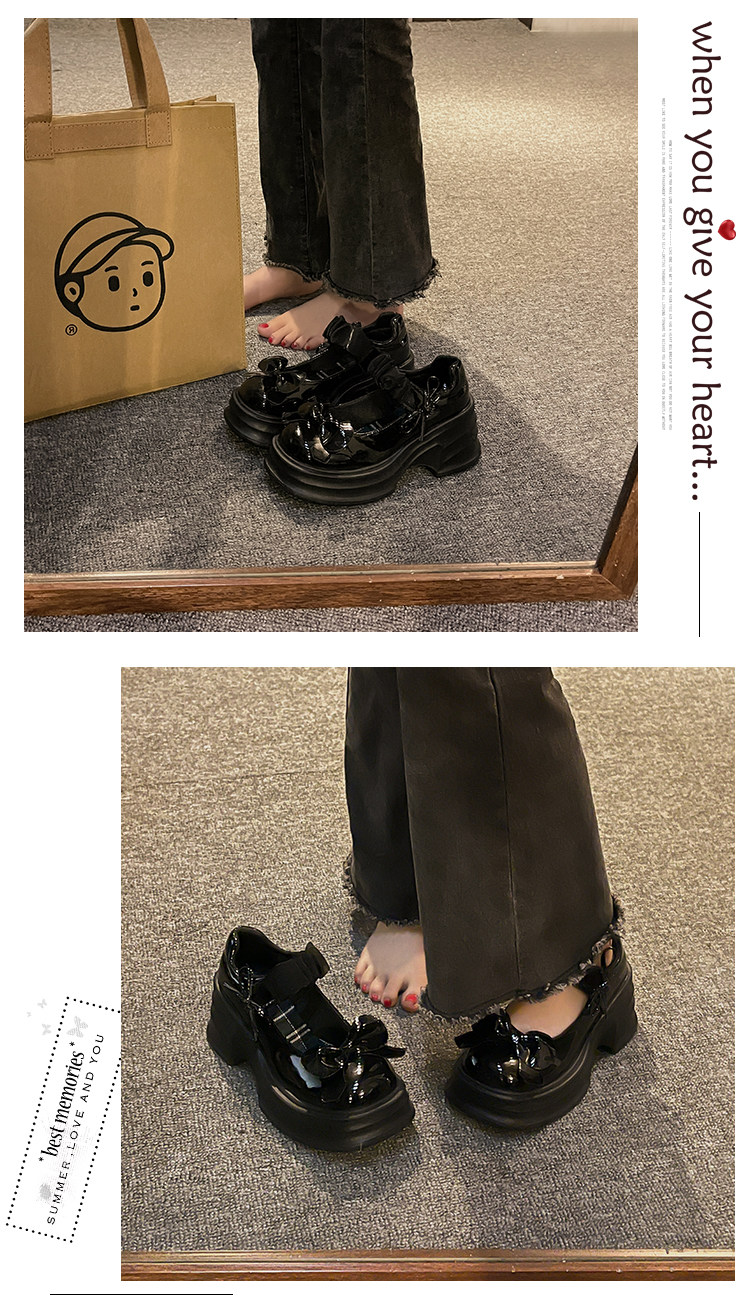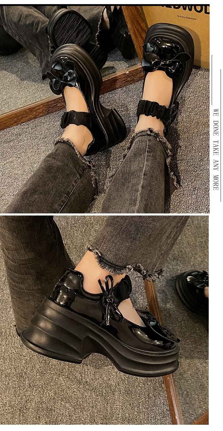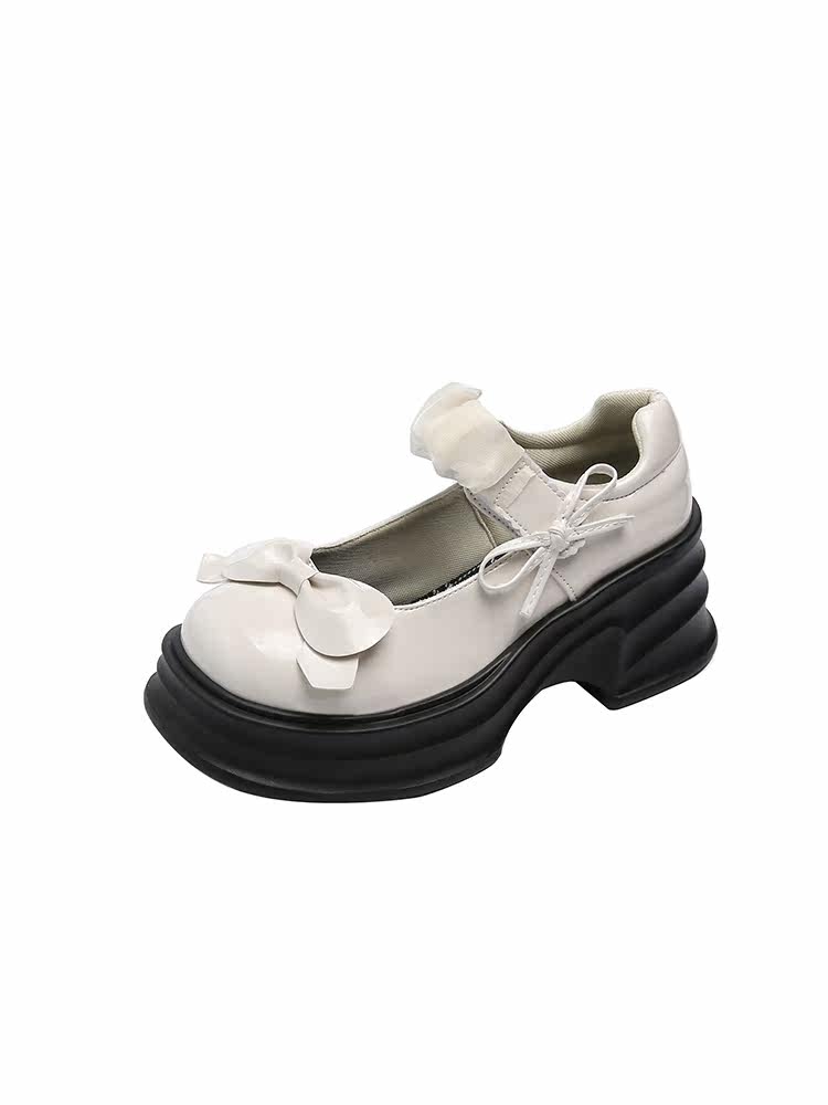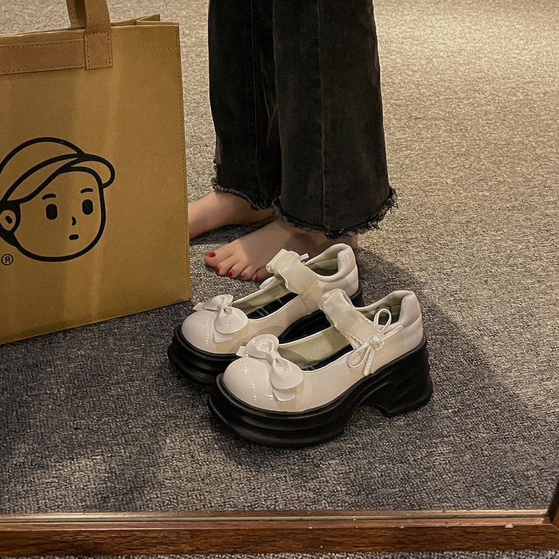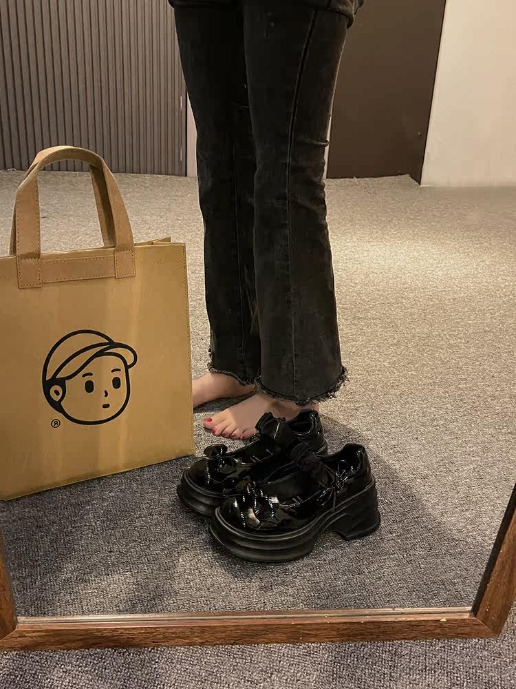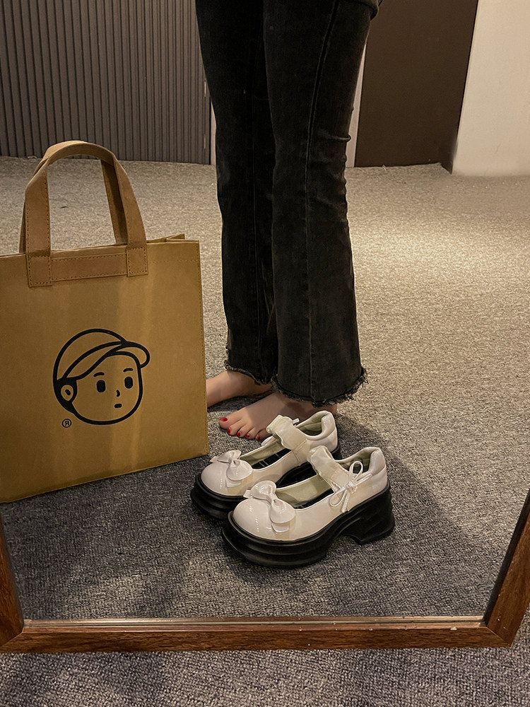 Японская обувь для кожаной обуви с бантиком на платформе, высокие туфли, коллекция 2023, французский ретро стиль