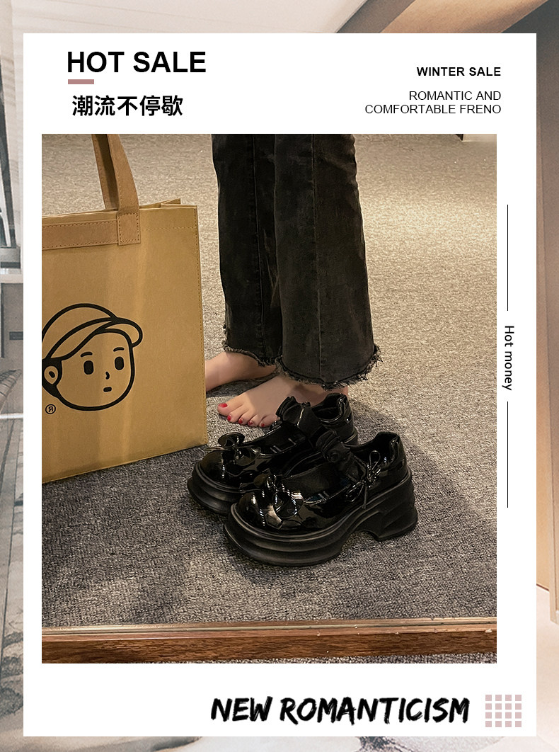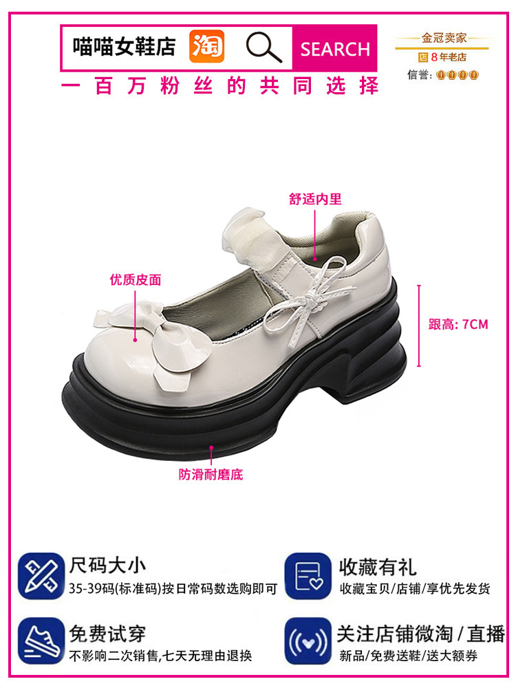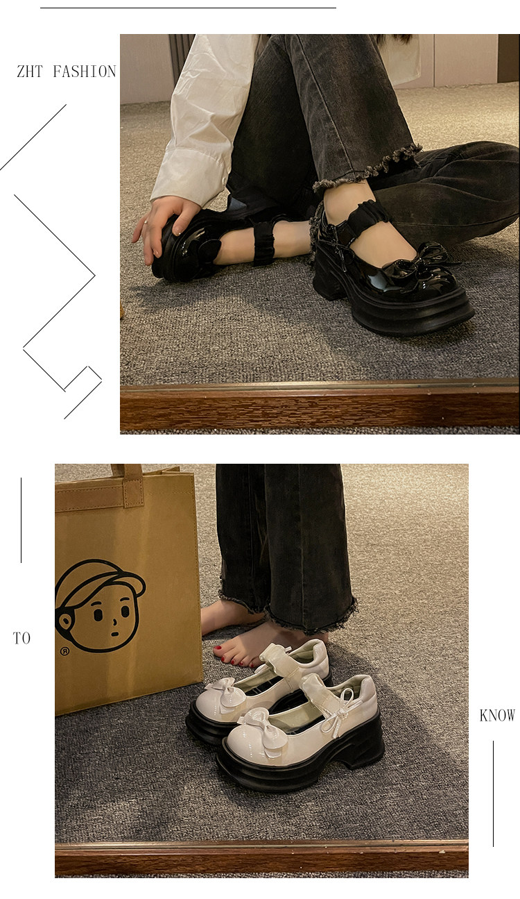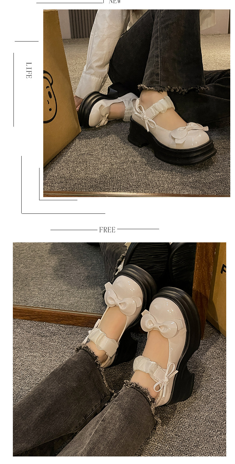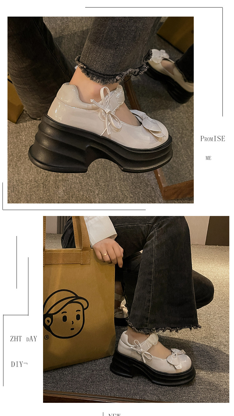 Японская обувь для кожаной обуви с бантиком на платформе, высокие туфли, коллекция 2023, французский ретро стиль