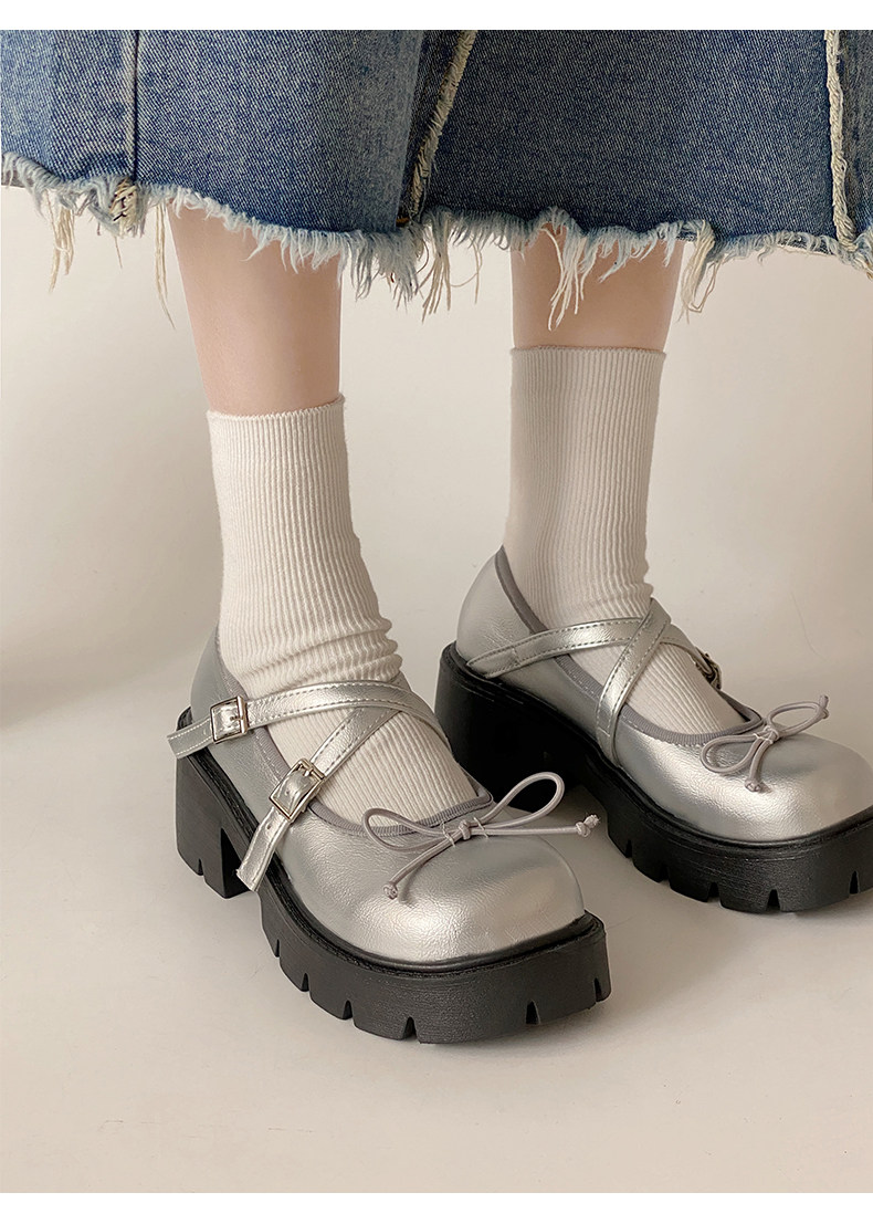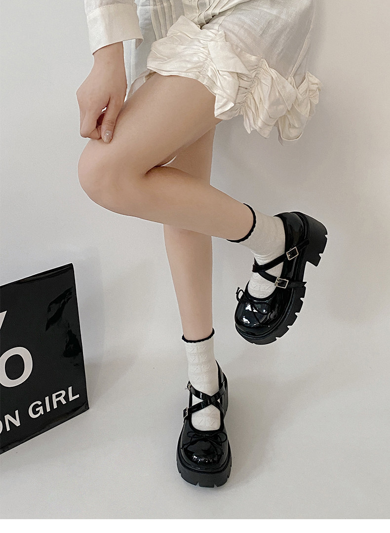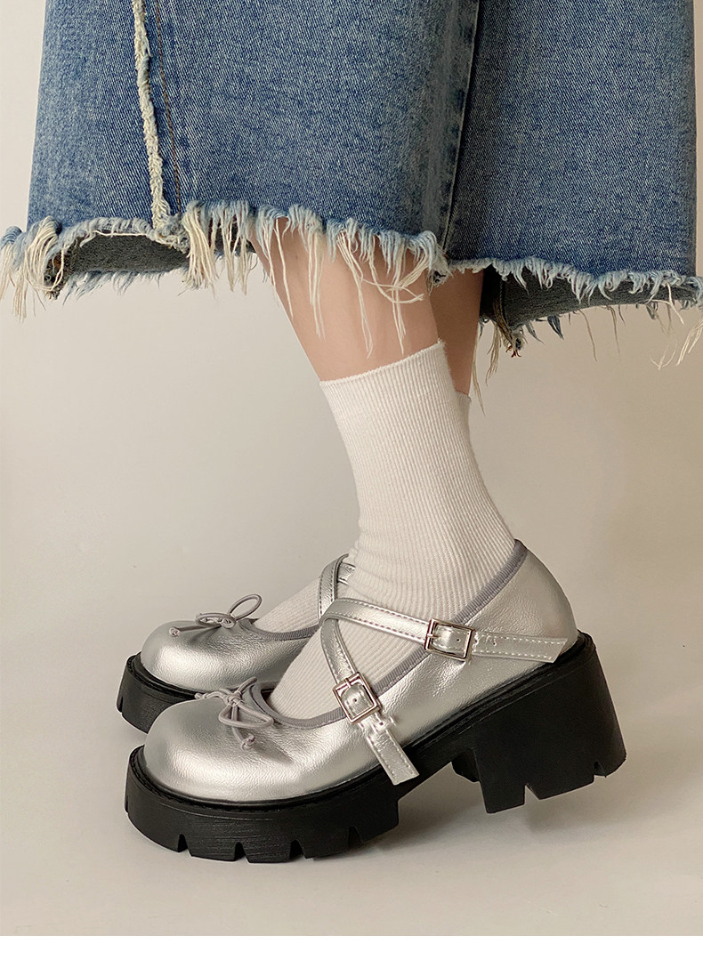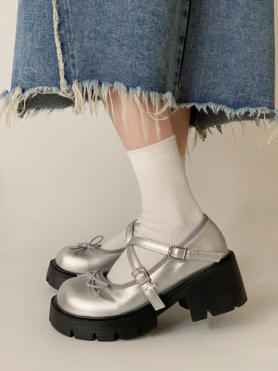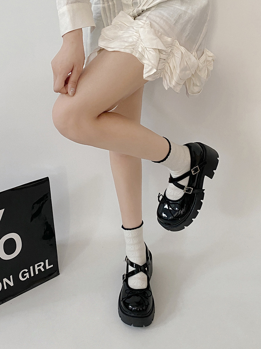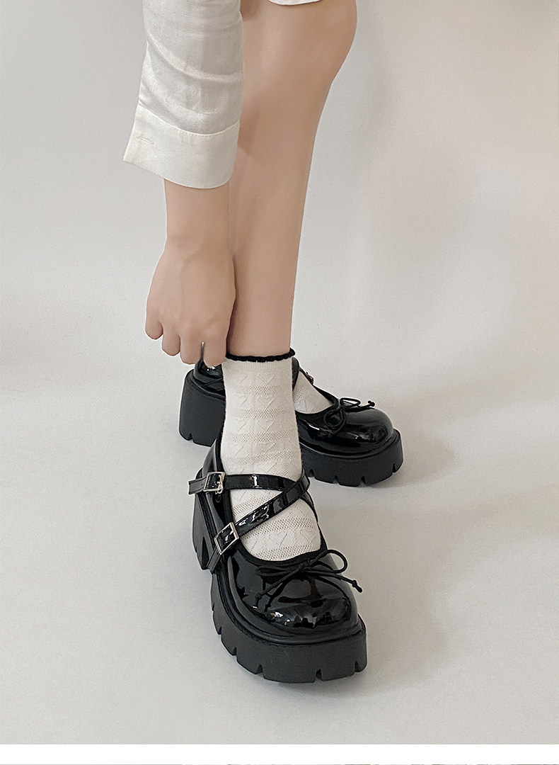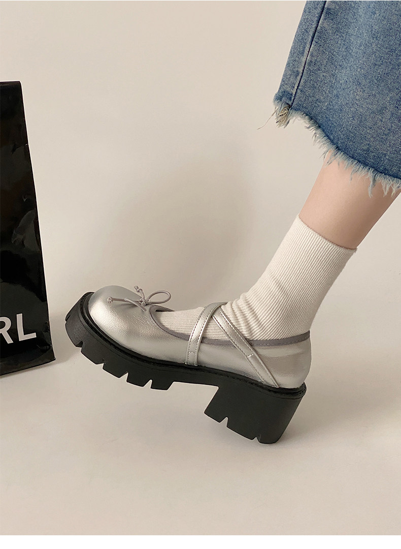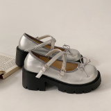 Высокие японские универсальные туфли на платформе с бантиком для кожаной обуви