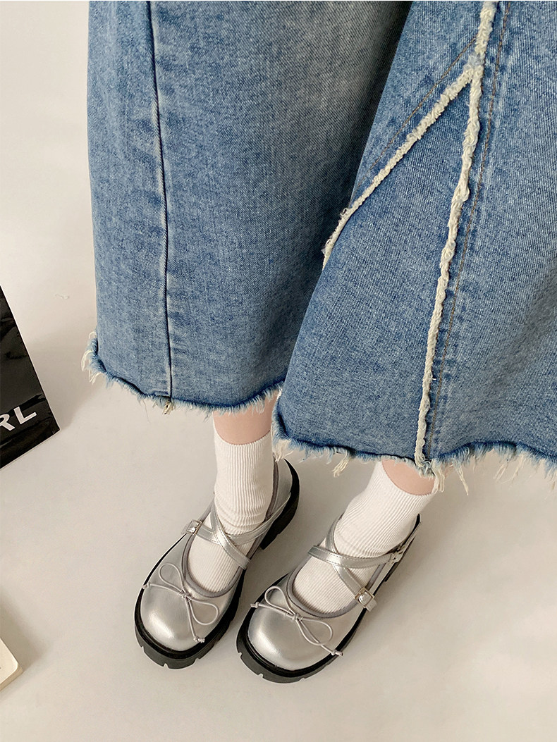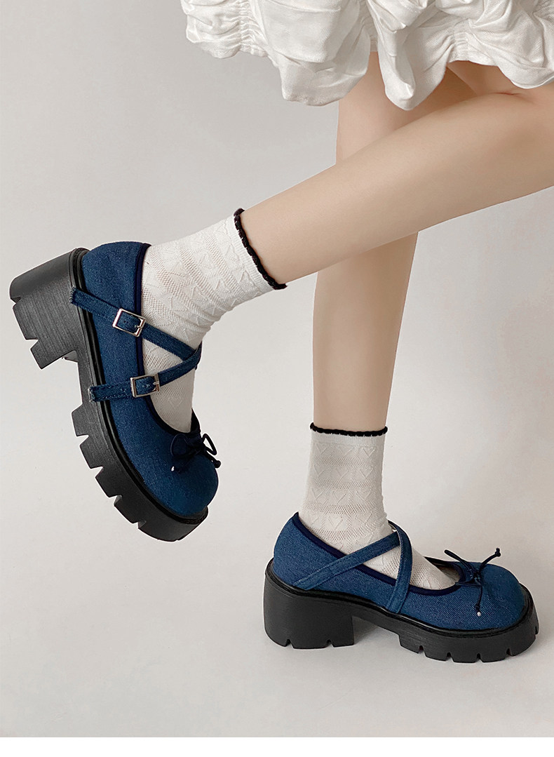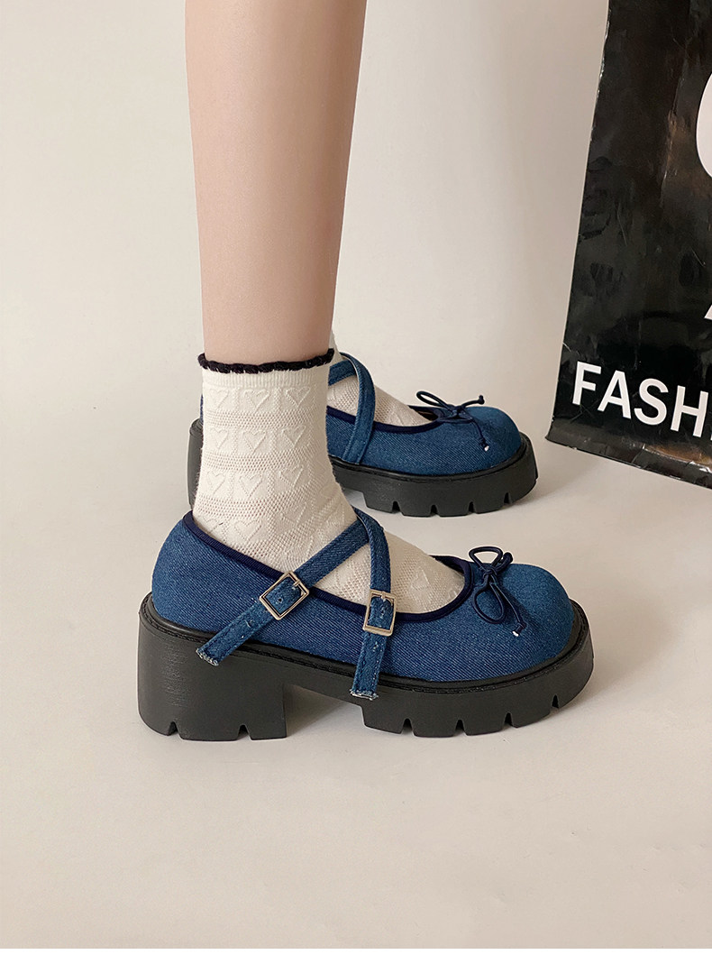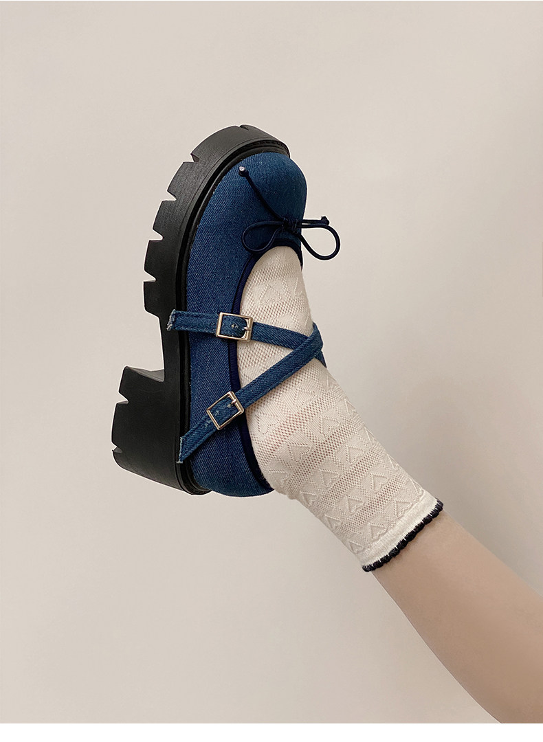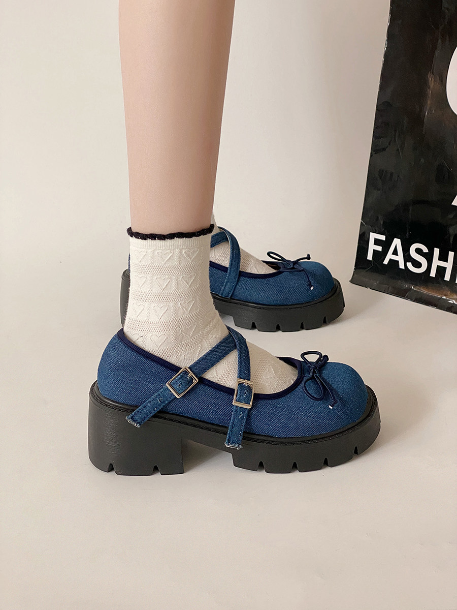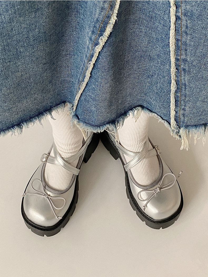 Высокие японские универсальные туфли на платформе с бантиком для кожаной обуви