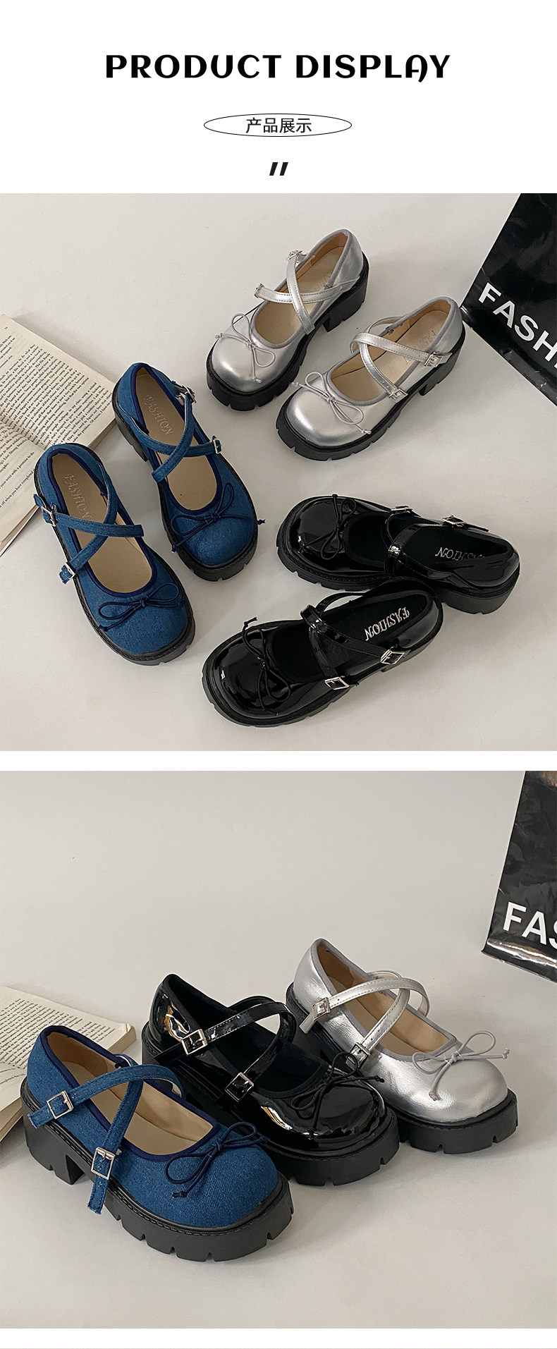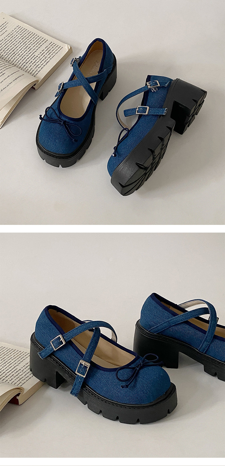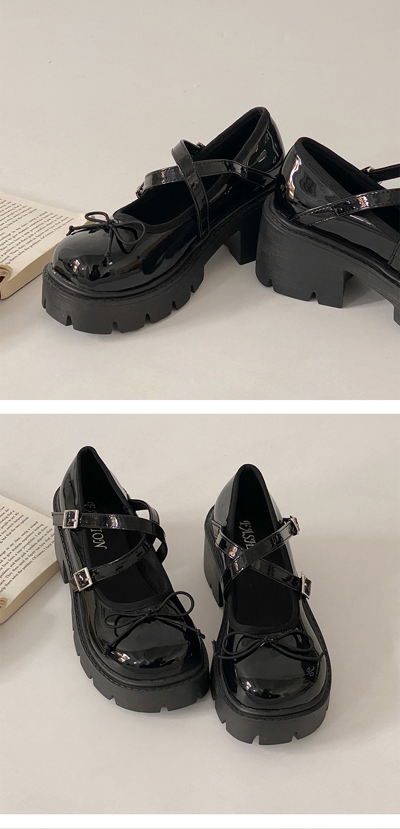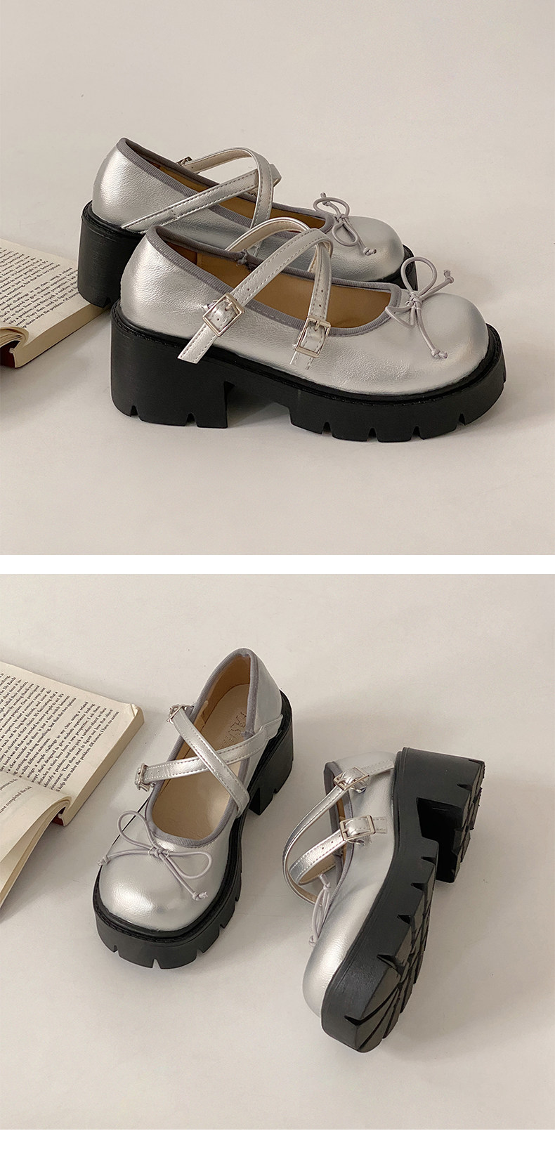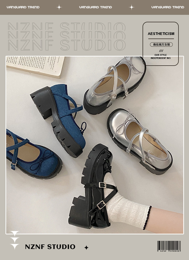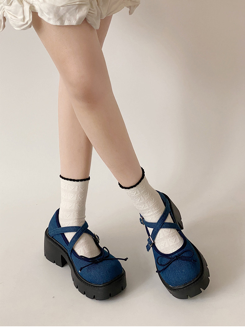 Высокие японские универсальные туфли на платформе с бантиком для кожаной обуви
