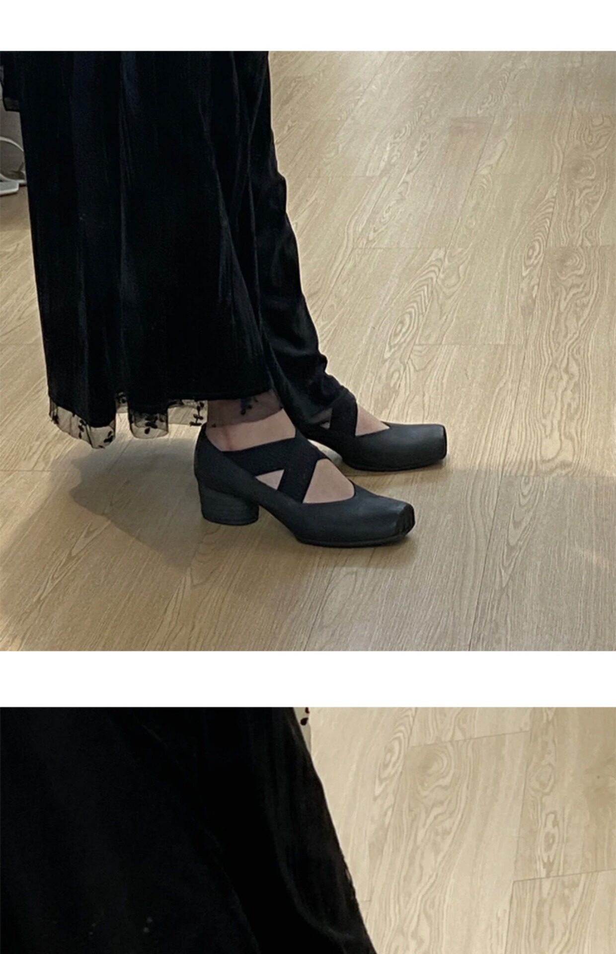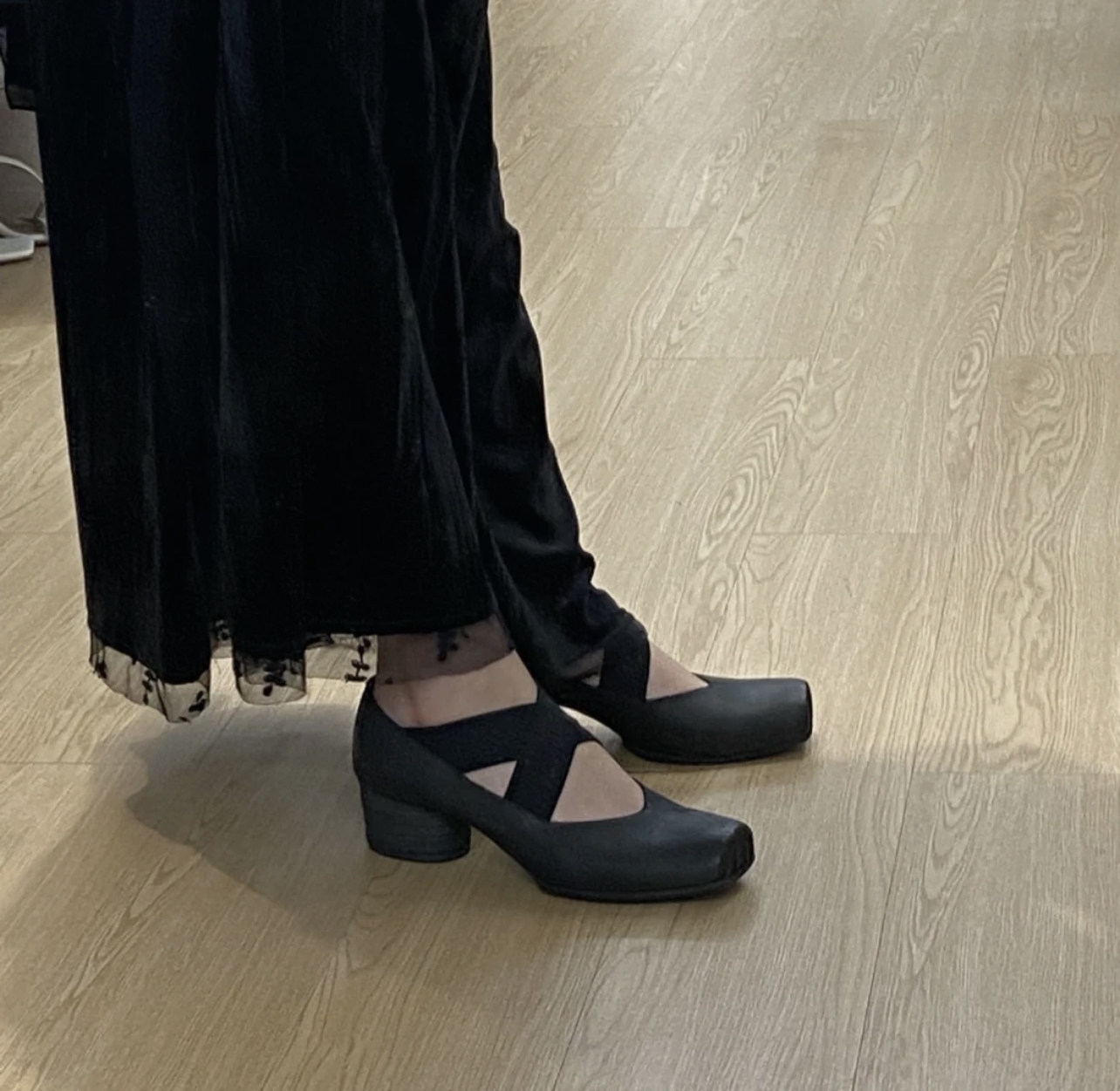 - Черный низкий каблук
