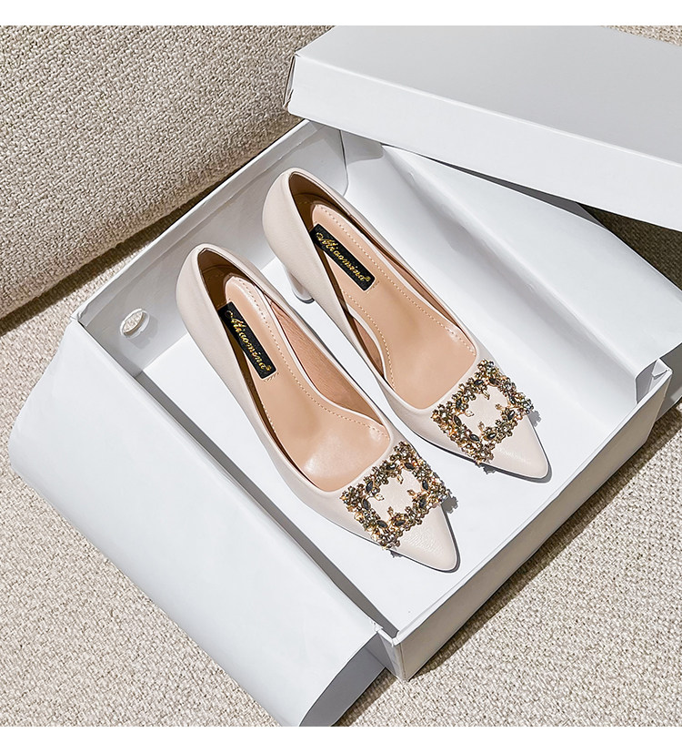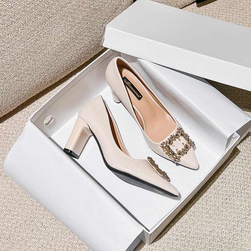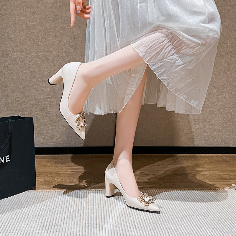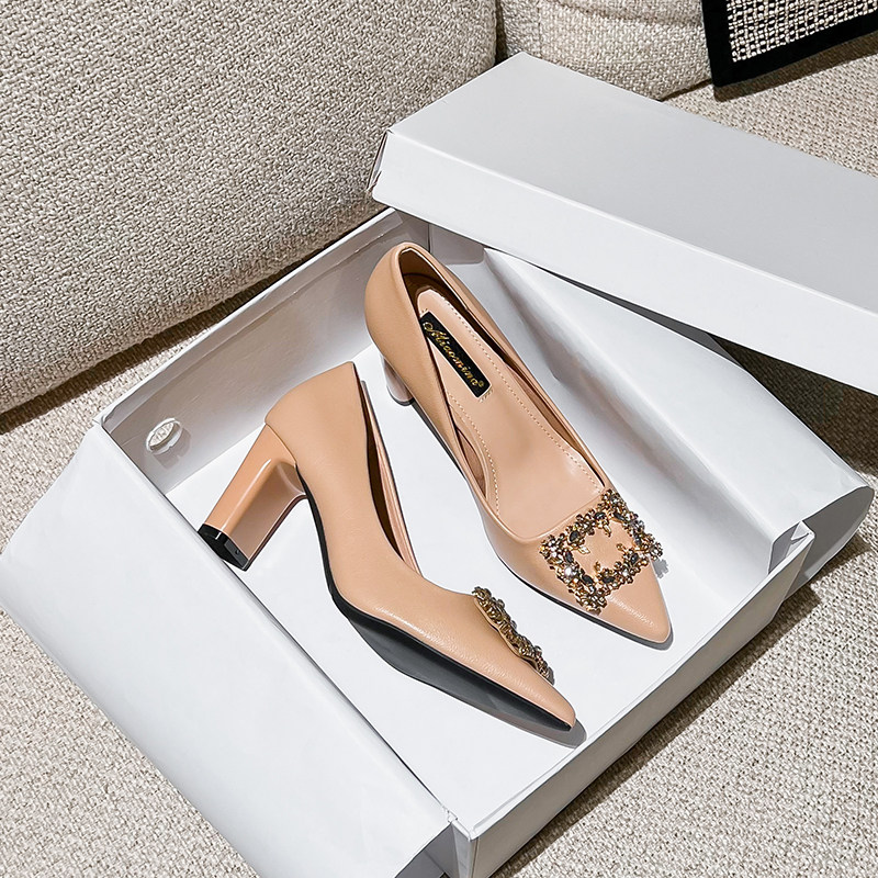 Обувь с заостренным носом на высоком каблуке, подходит с юбкой, в стиле Шанель, 2024 года