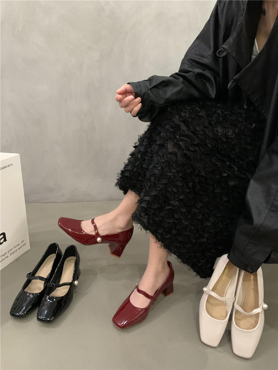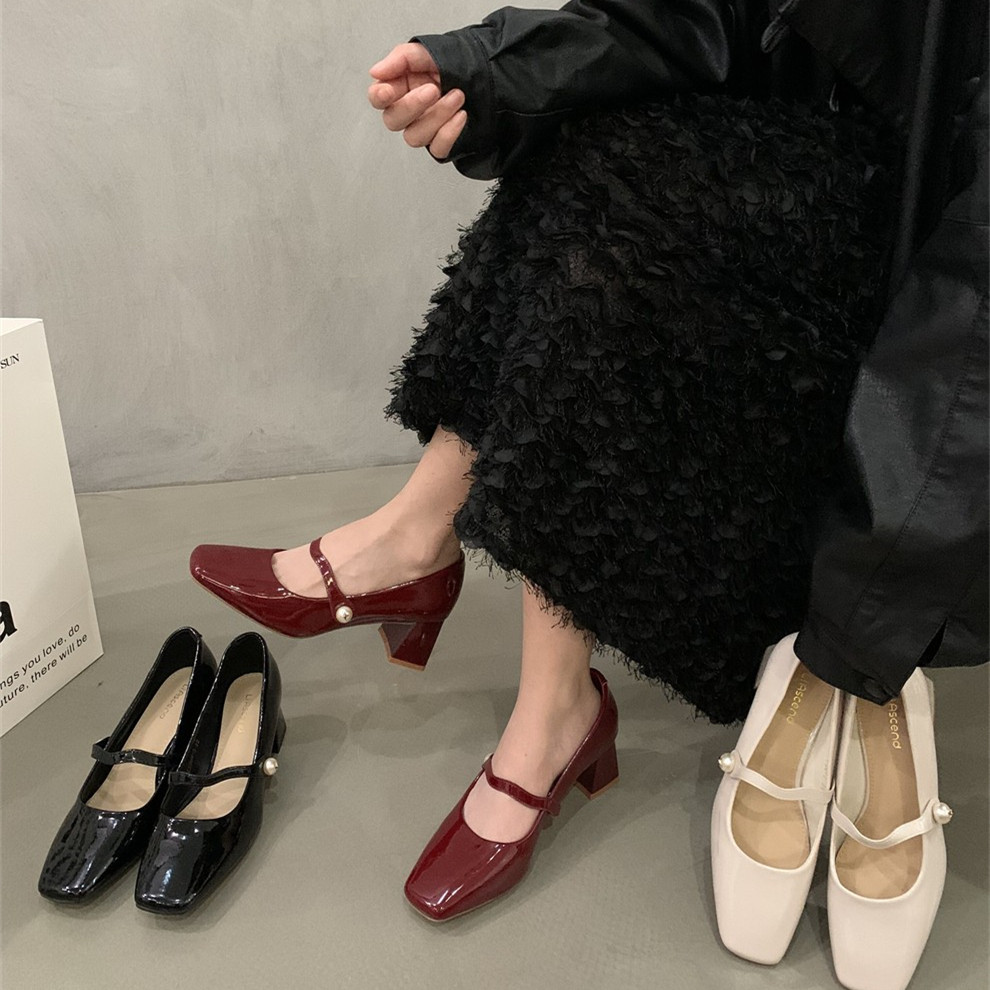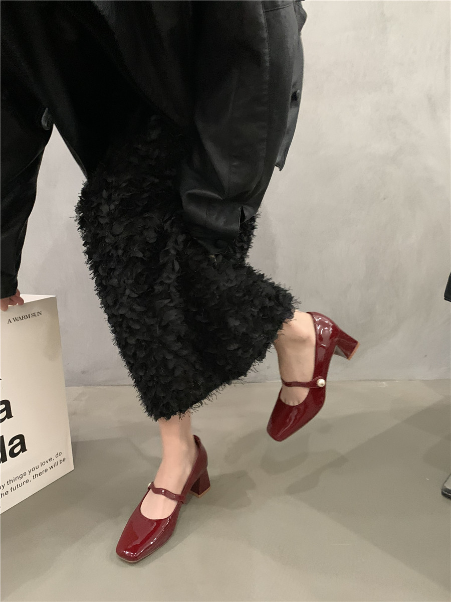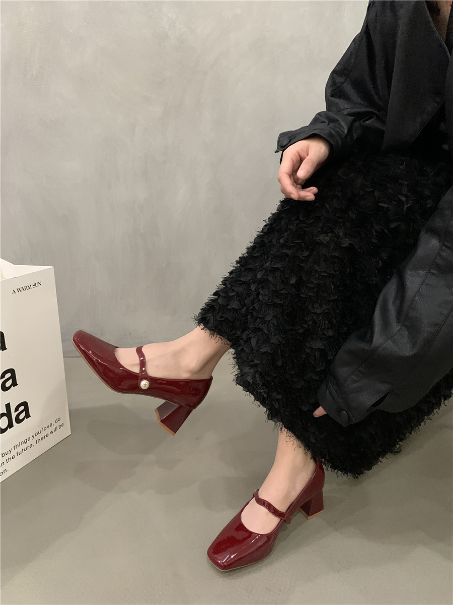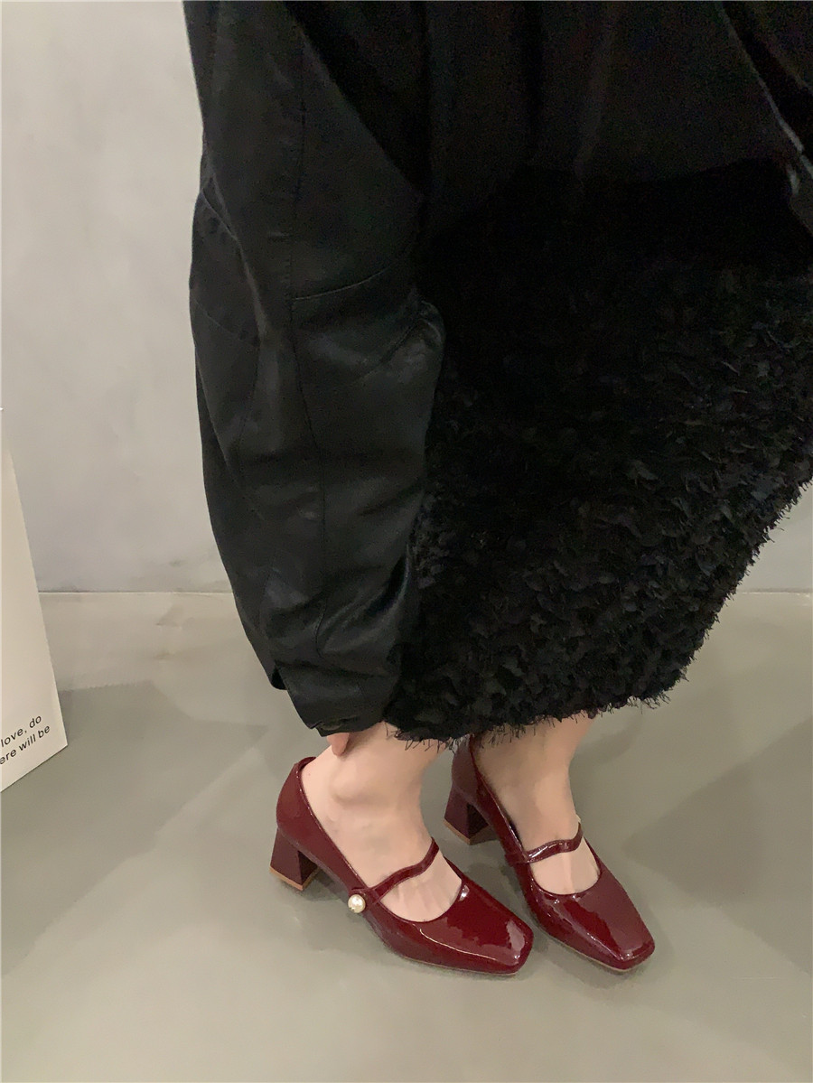 Подходит с юбкой на высоком каблуке, ретро красная обувь с низким вырезом для кожаной обуви