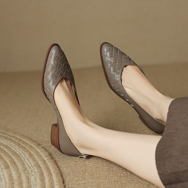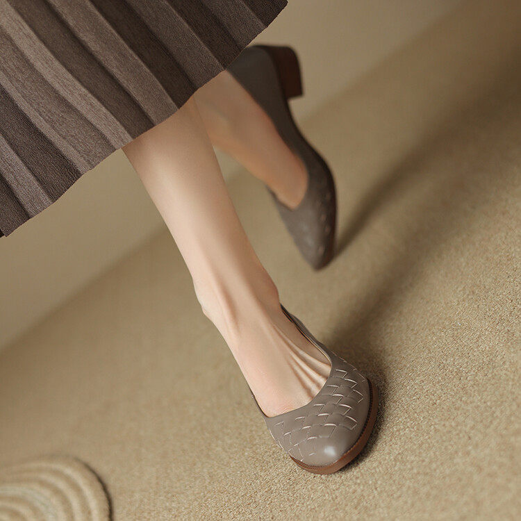 NNMISS осенью новая гигантская мягкая ретро тканая тканая тканая ковая толстая каблука для одиночной обувь средняя каблука Удобный темперамент и обувь для поездок на работу
