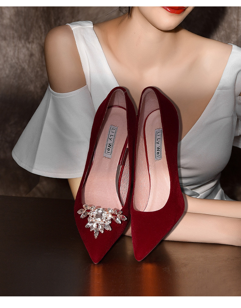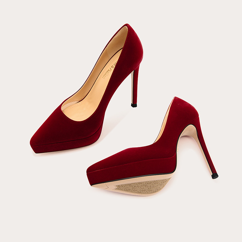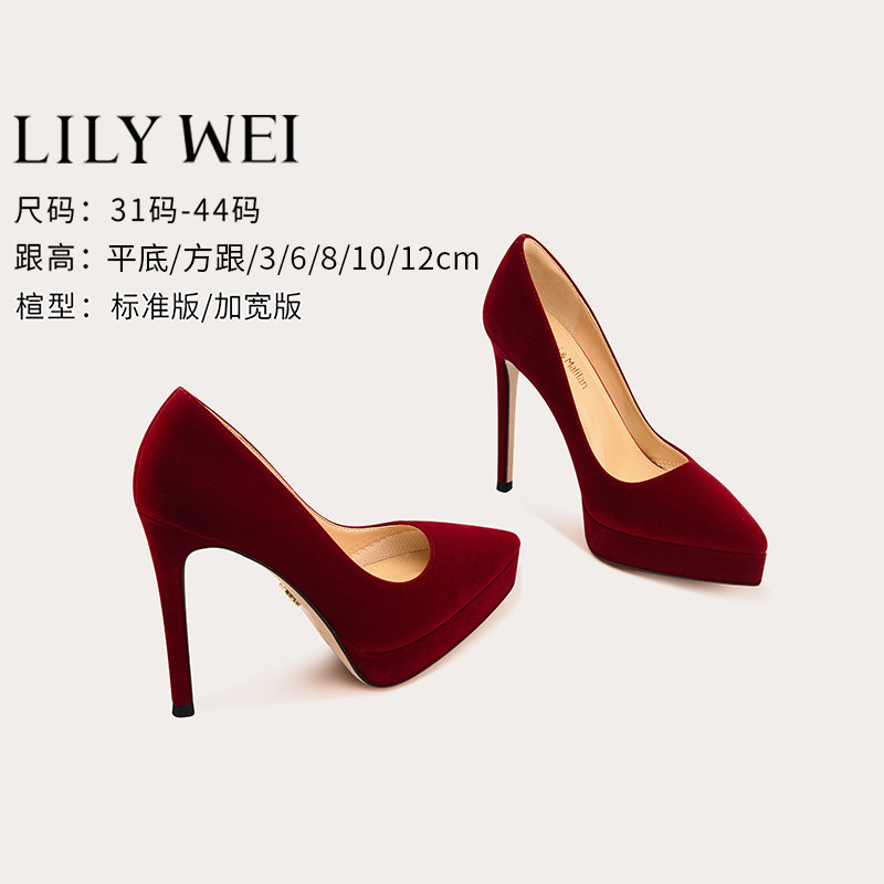Lily Wei Ретро красные водонепроницаемые туфли на высоком каблуке, свадебные туфли, цвета киновари