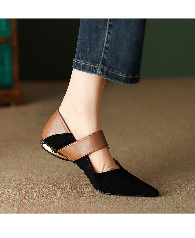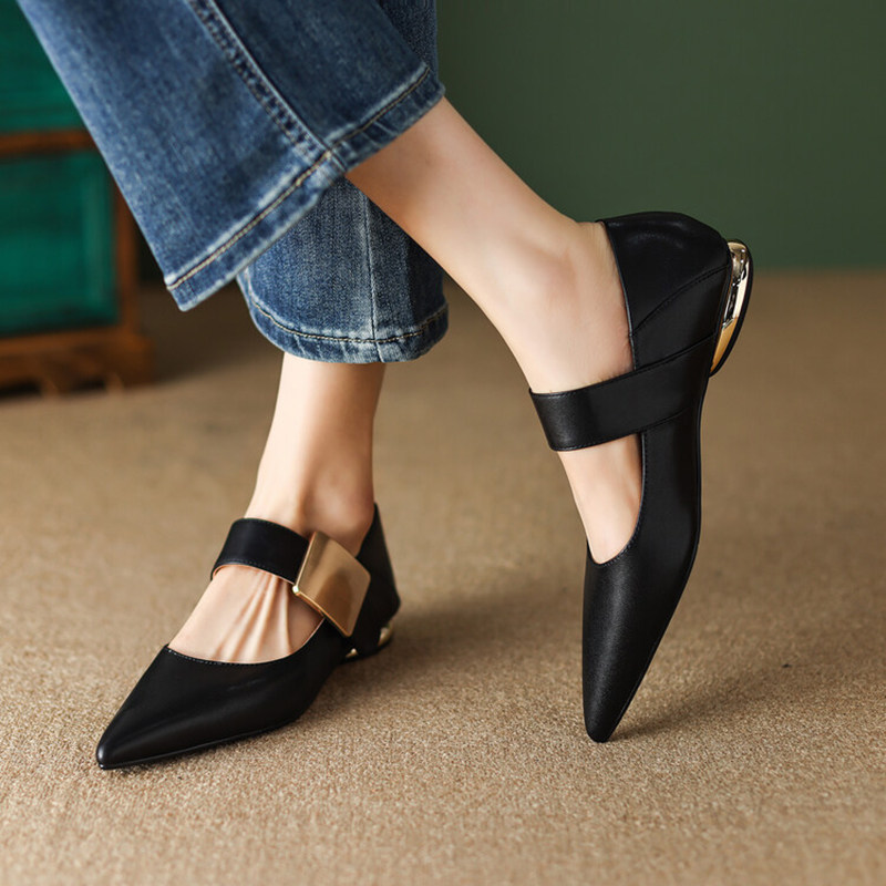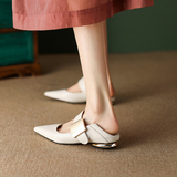 Металлическая матовая обувь с заостренным носом, из натуральной кожи, французский ретро стиль