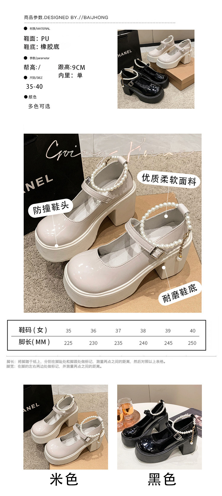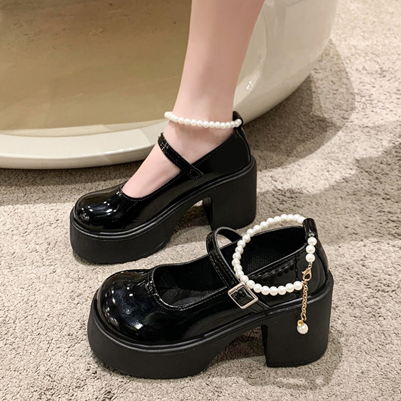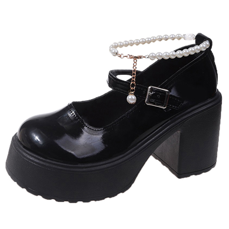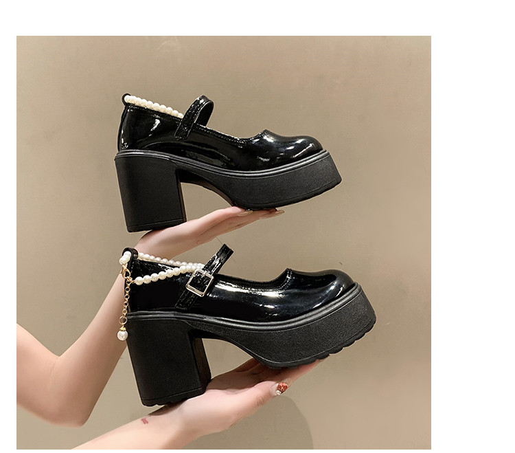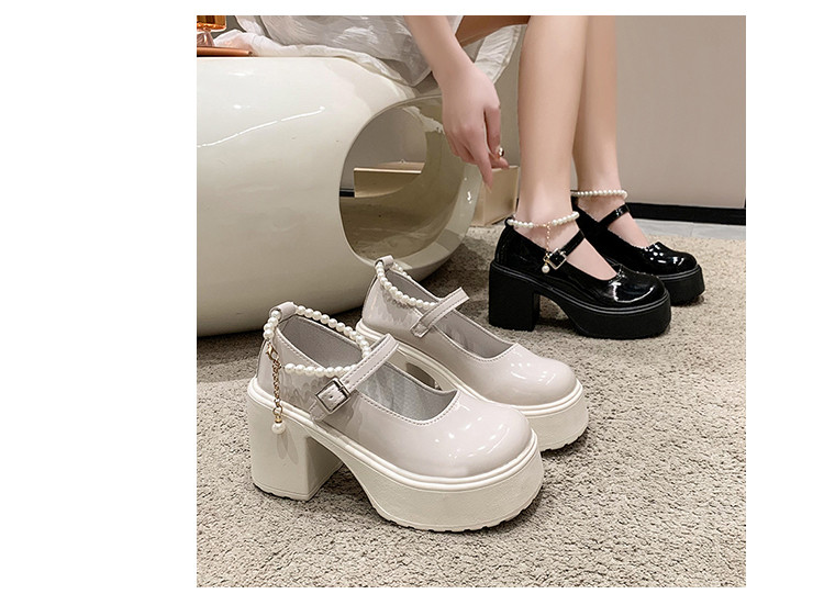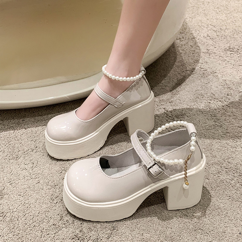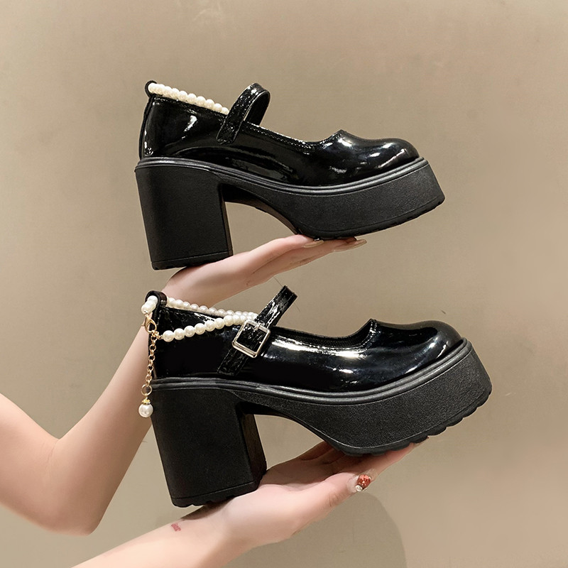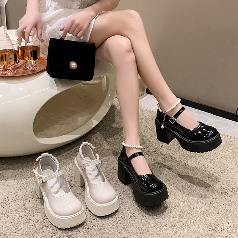 Туфли, модная высокая обувь для кожаной обуви из жемчуга на платформе, тренд сезона