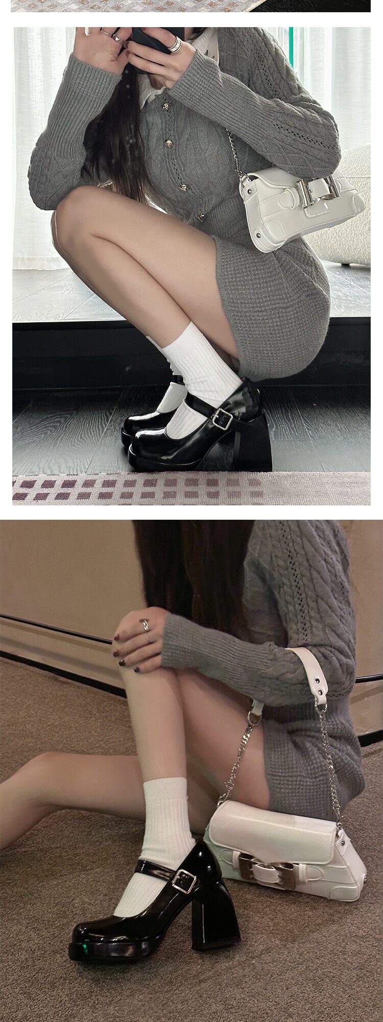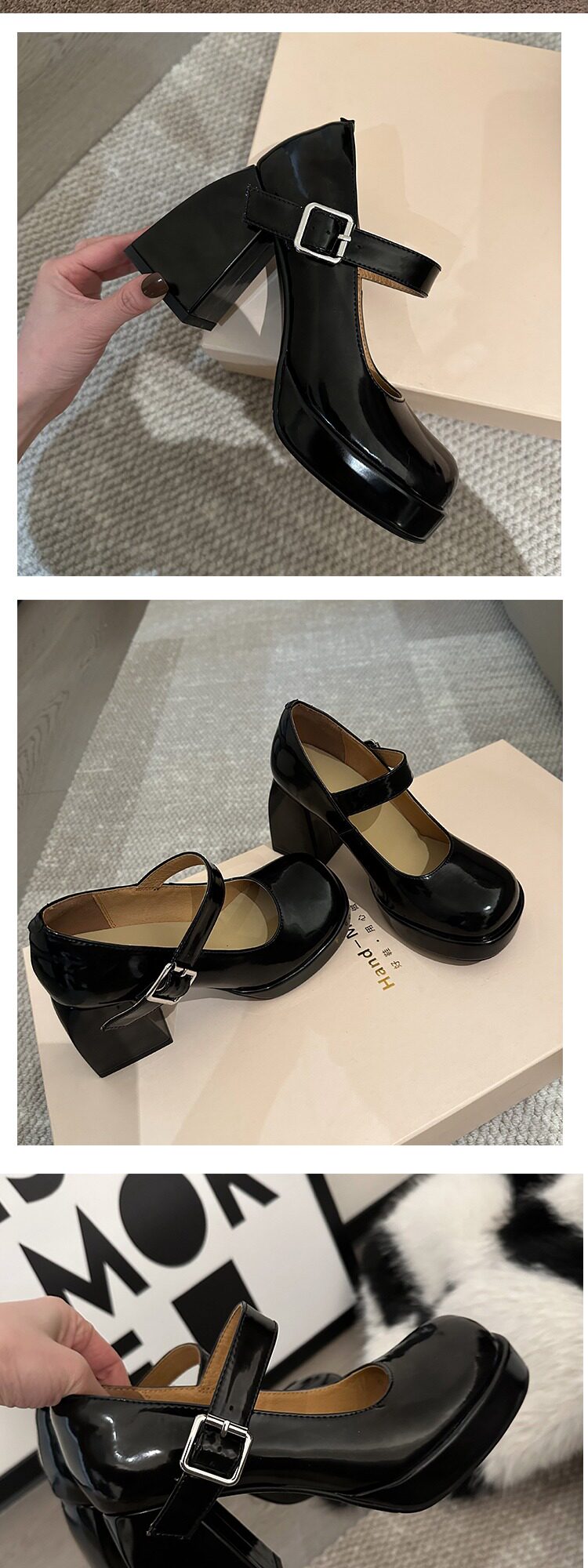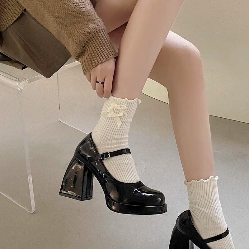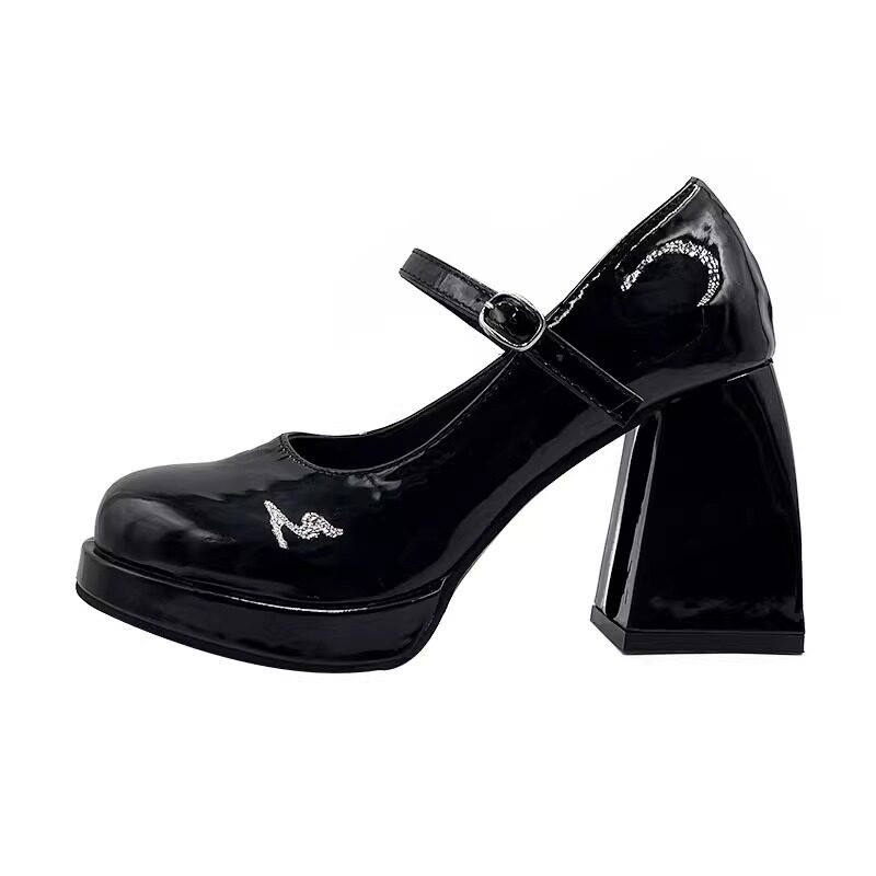 Французская футболка Мэри Джейн для женщин 2025 Новая весенняя квадратная квадратная носка ультра -высокие каблуки ретро jk маленькие кожаные туфли патентная кожа