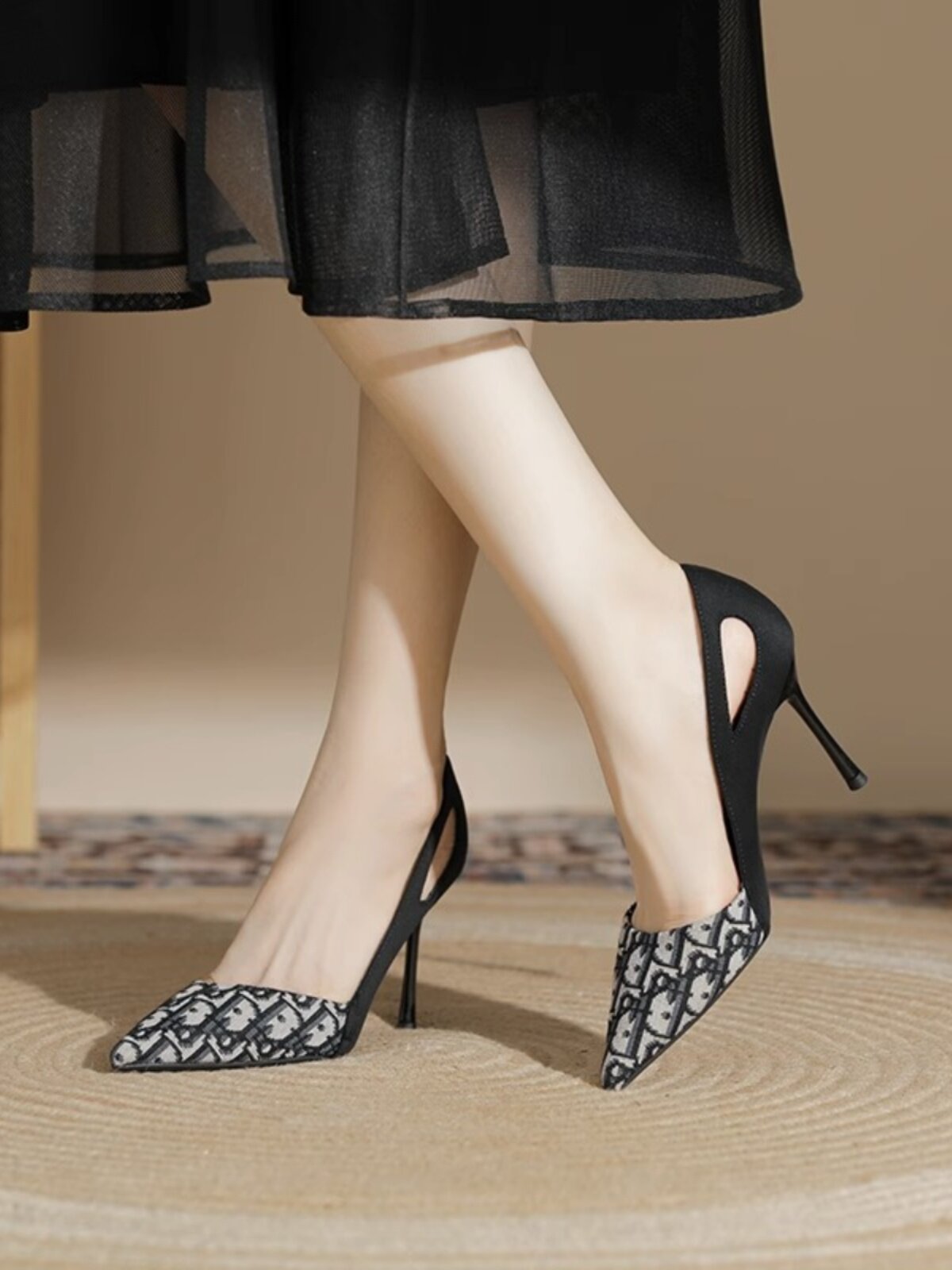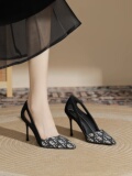 Сексуальная весенняя черная обувь на высоком каблуке с заостренным носом, французский стиль, 2025 года