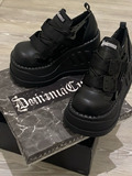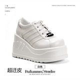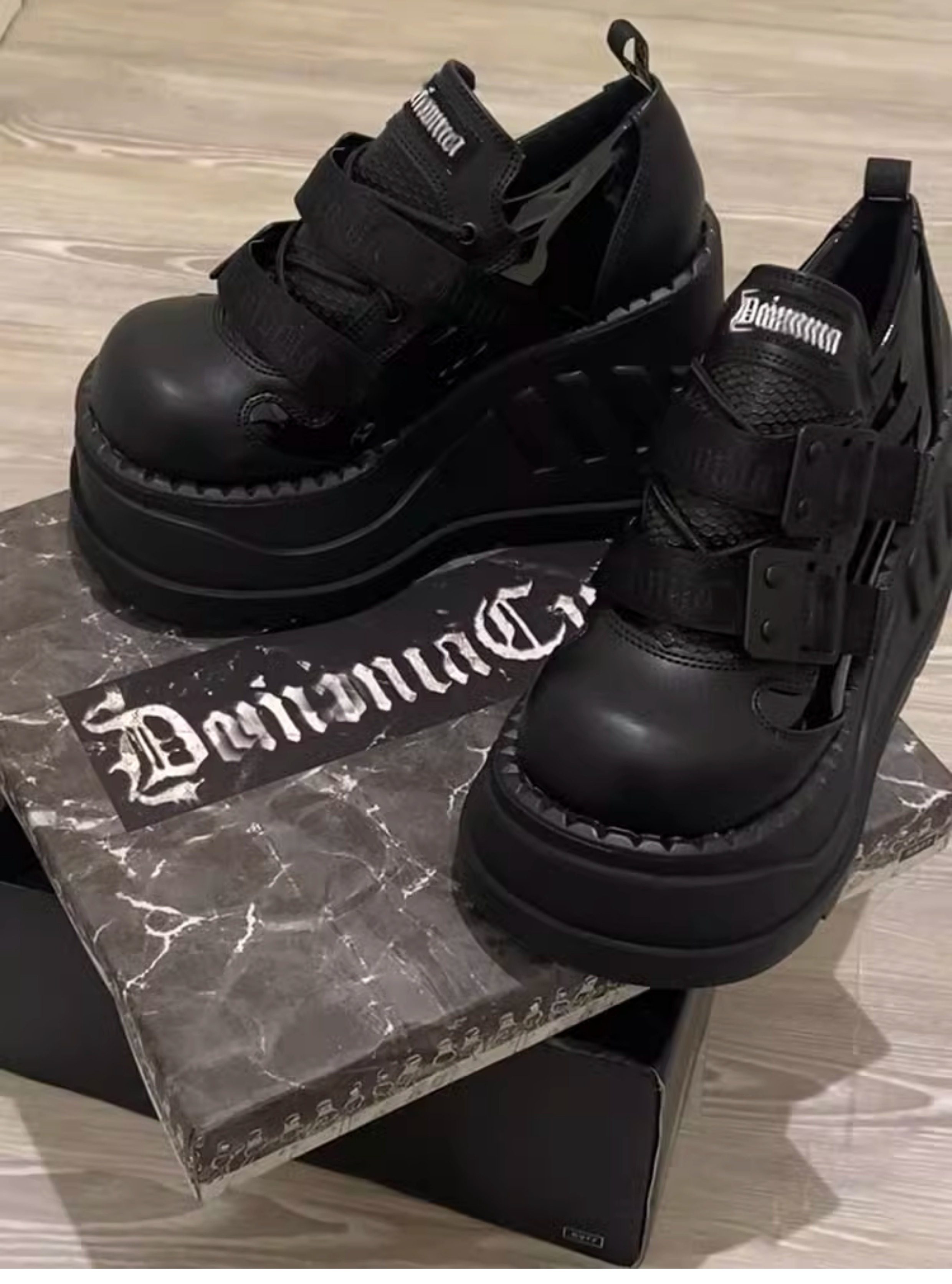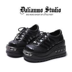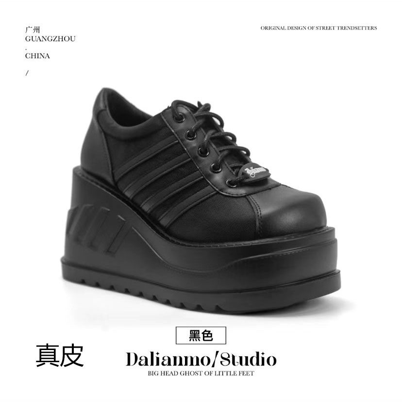 Демония, тот же новый продукт, толстая туфли, женская панк с двойными большими туфлями, большие туфли с большими головками, увеличить маленькие кожаные туфли.