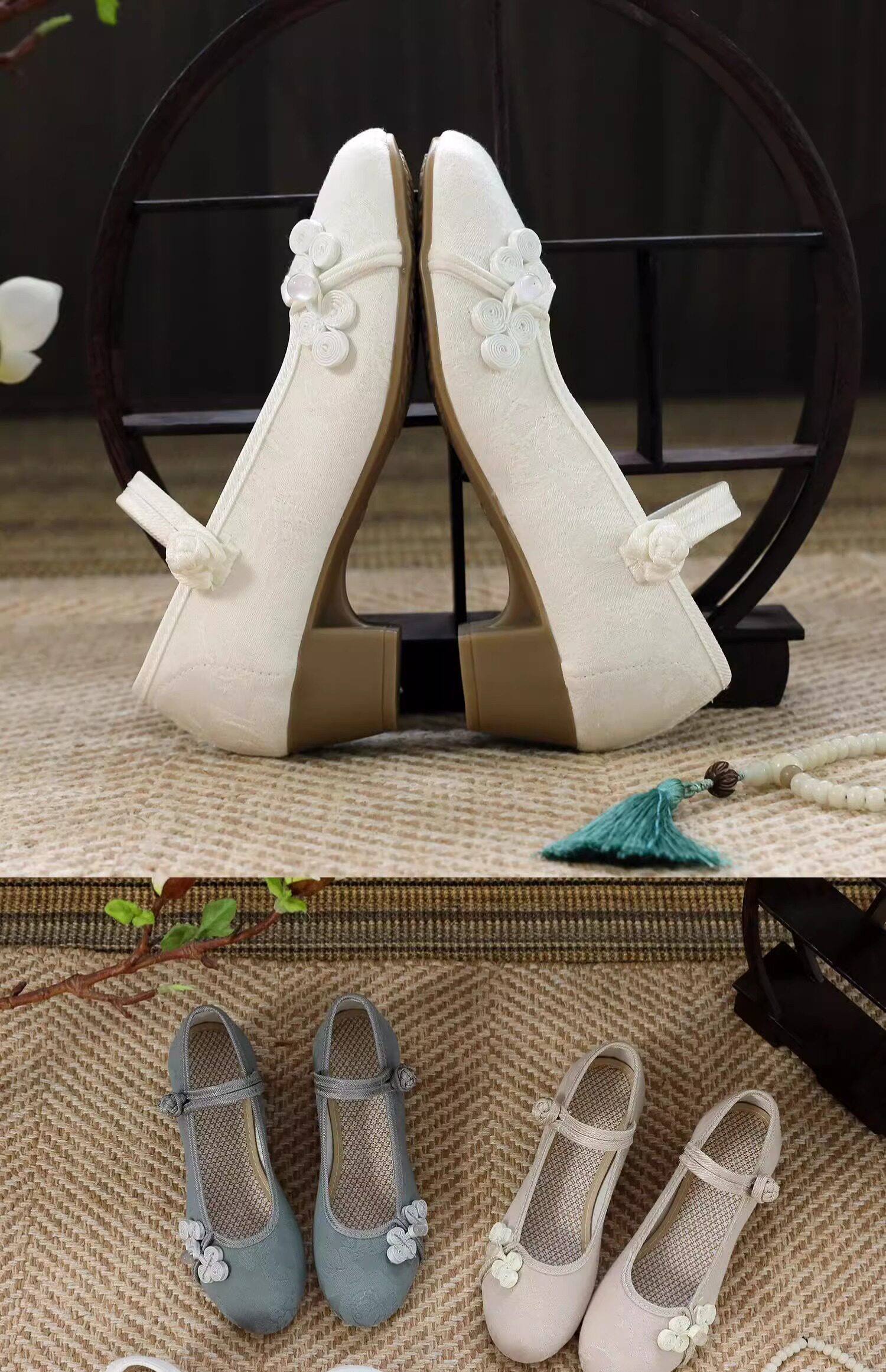Ципао, высокая ретро обувь, высокое ханьфу