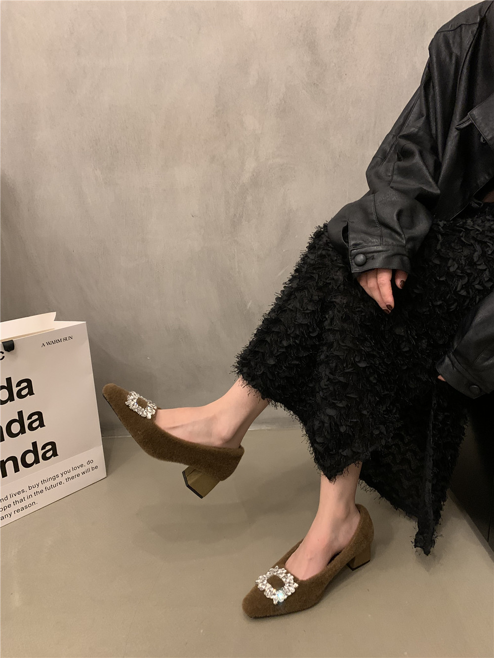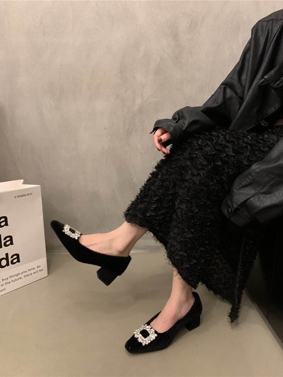 Флисовая высокая демисезонная обувь на высоком каблуке, в стиле Шанель, изысканный стиль, французский стиль