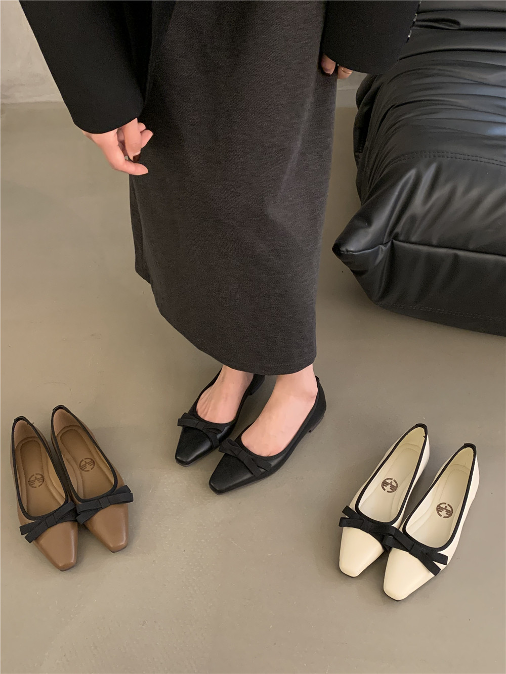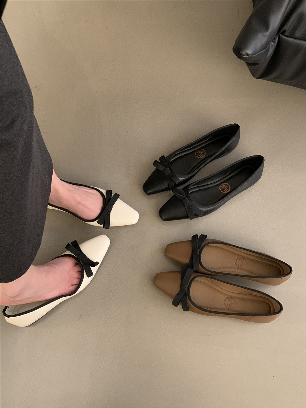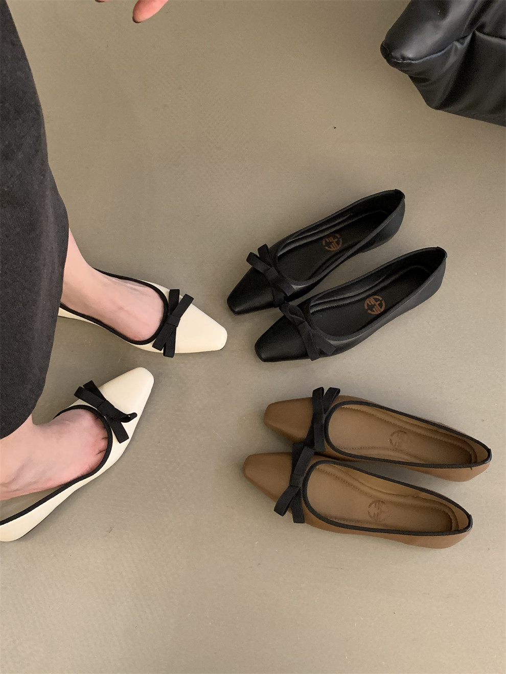 Демисезонная обувь с бантиком с низким вырезом, французский ретро стиль