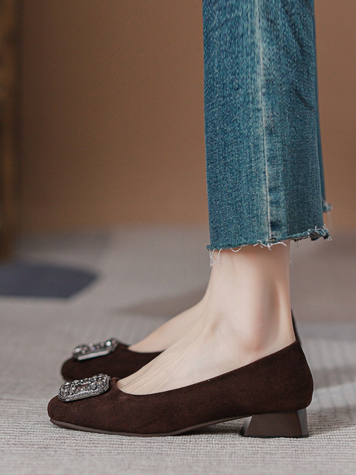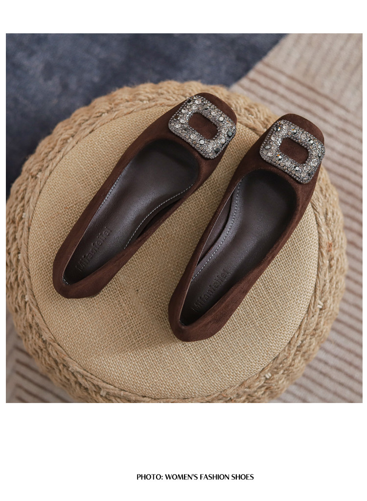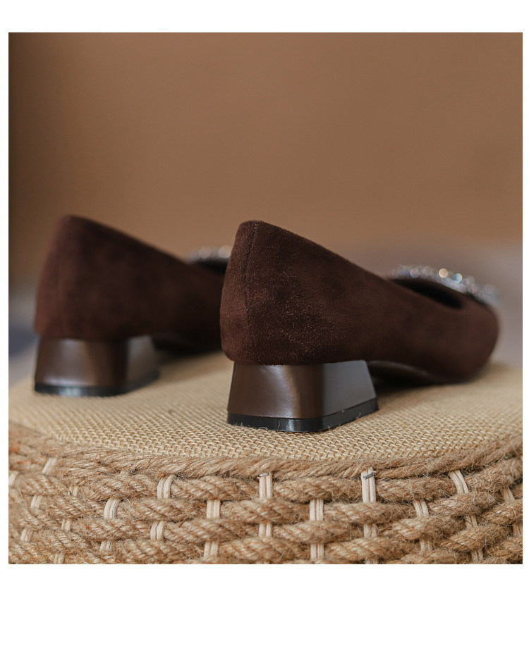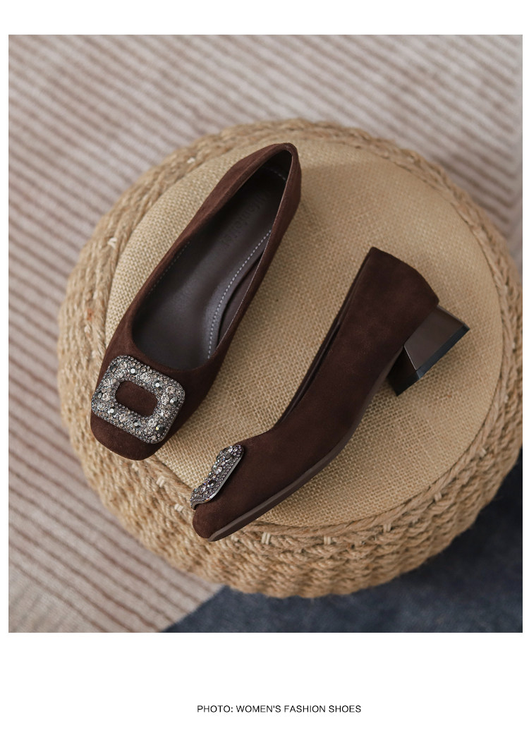 Женские туфли на толстом каблуке из овчины с квадратным носком, весна-осень 2025, новый стиль, универсальные туфли для мелкой воды, не уставающие ноги, женские туфли на высоком каблуке