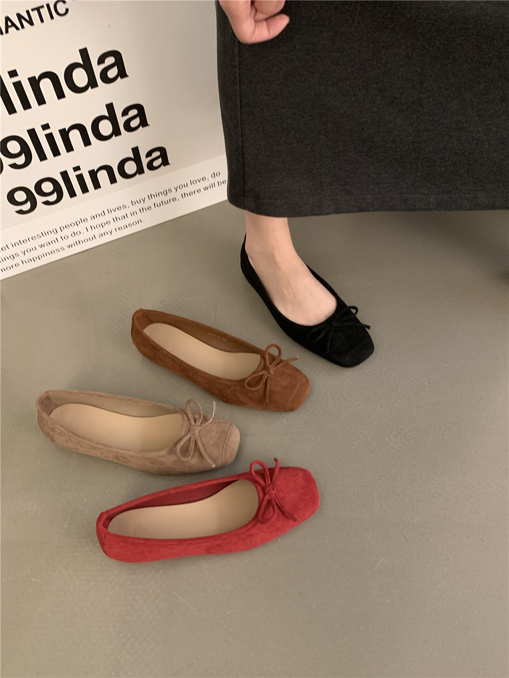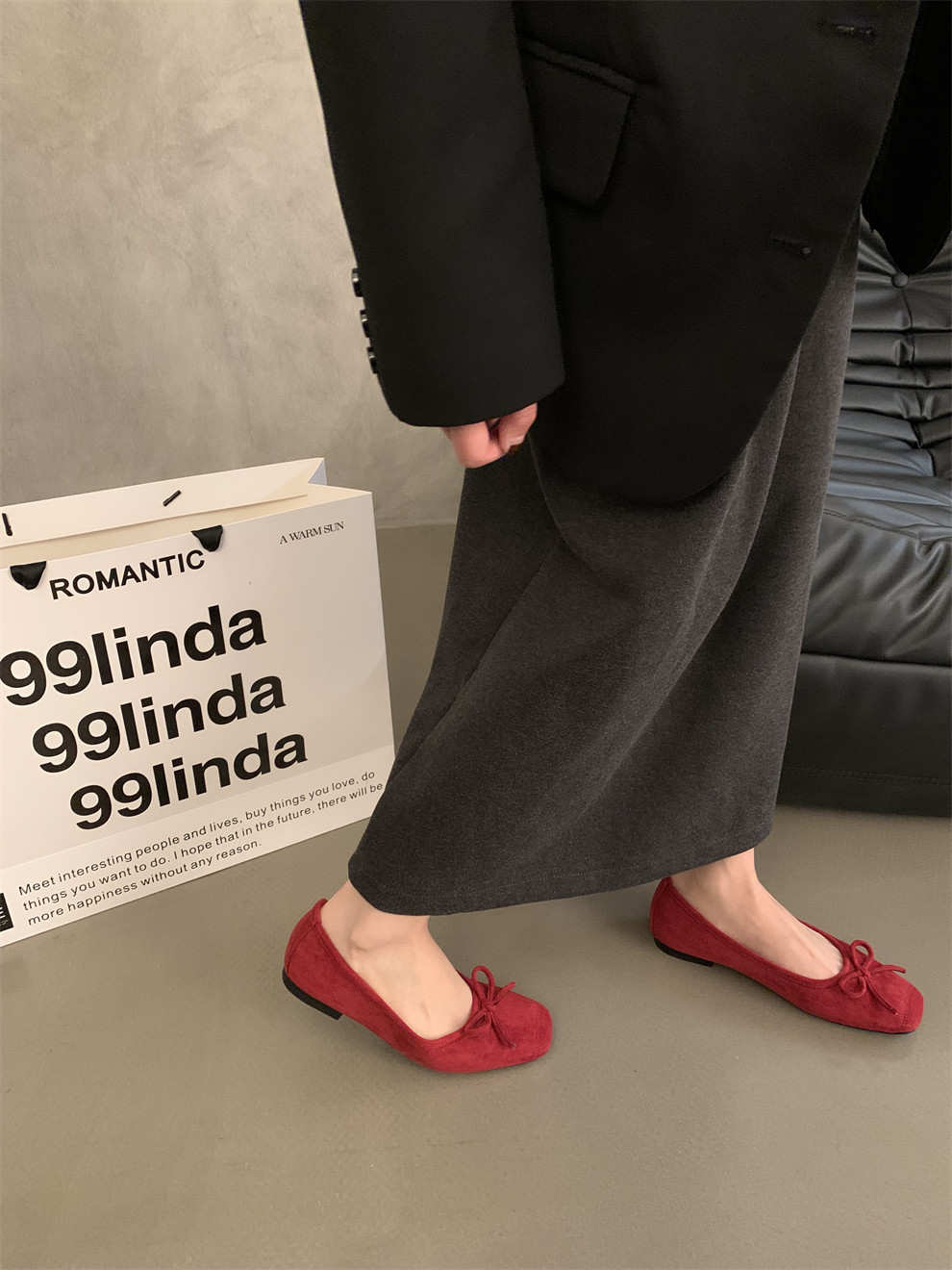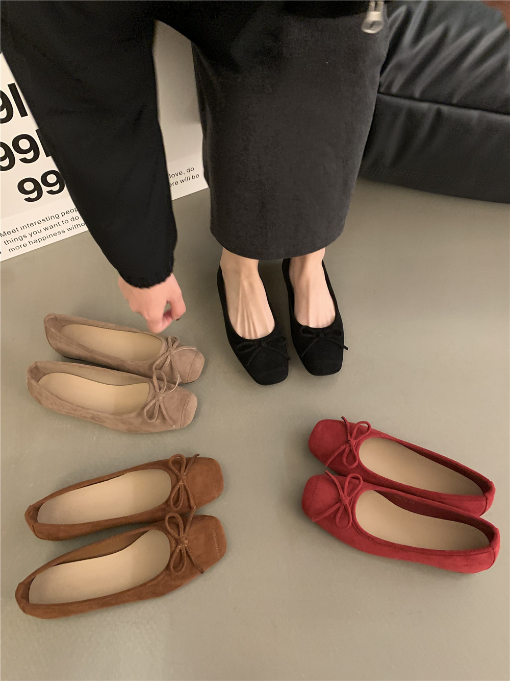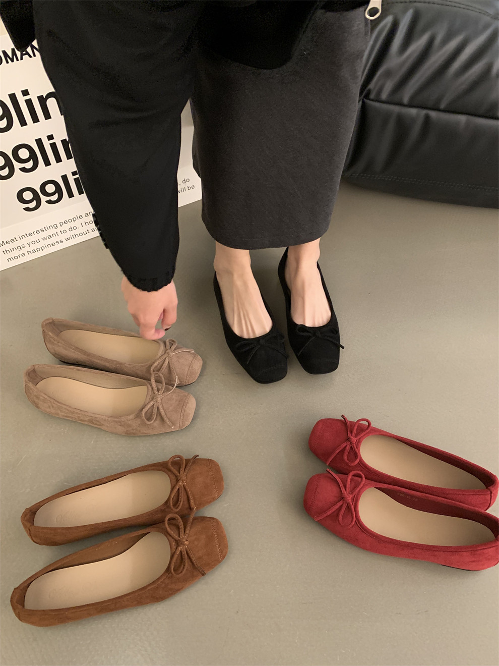 Плоская подошва обувь с бантиком, красные черные балетки, французский стиль