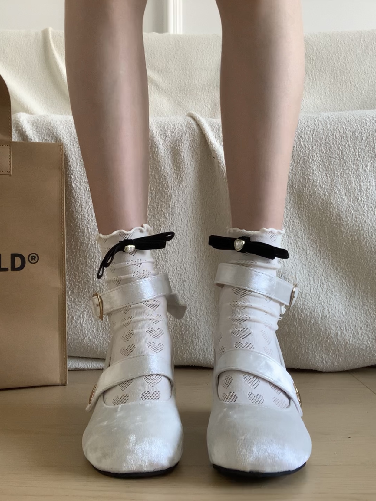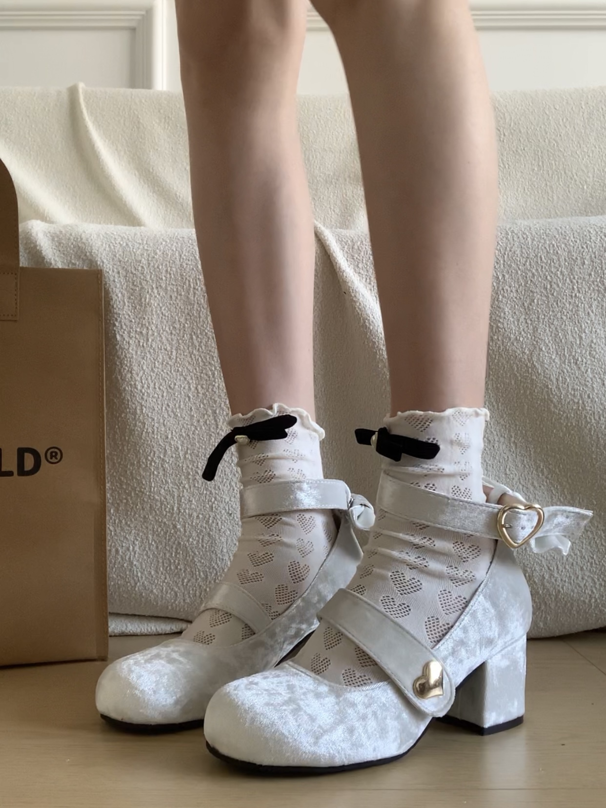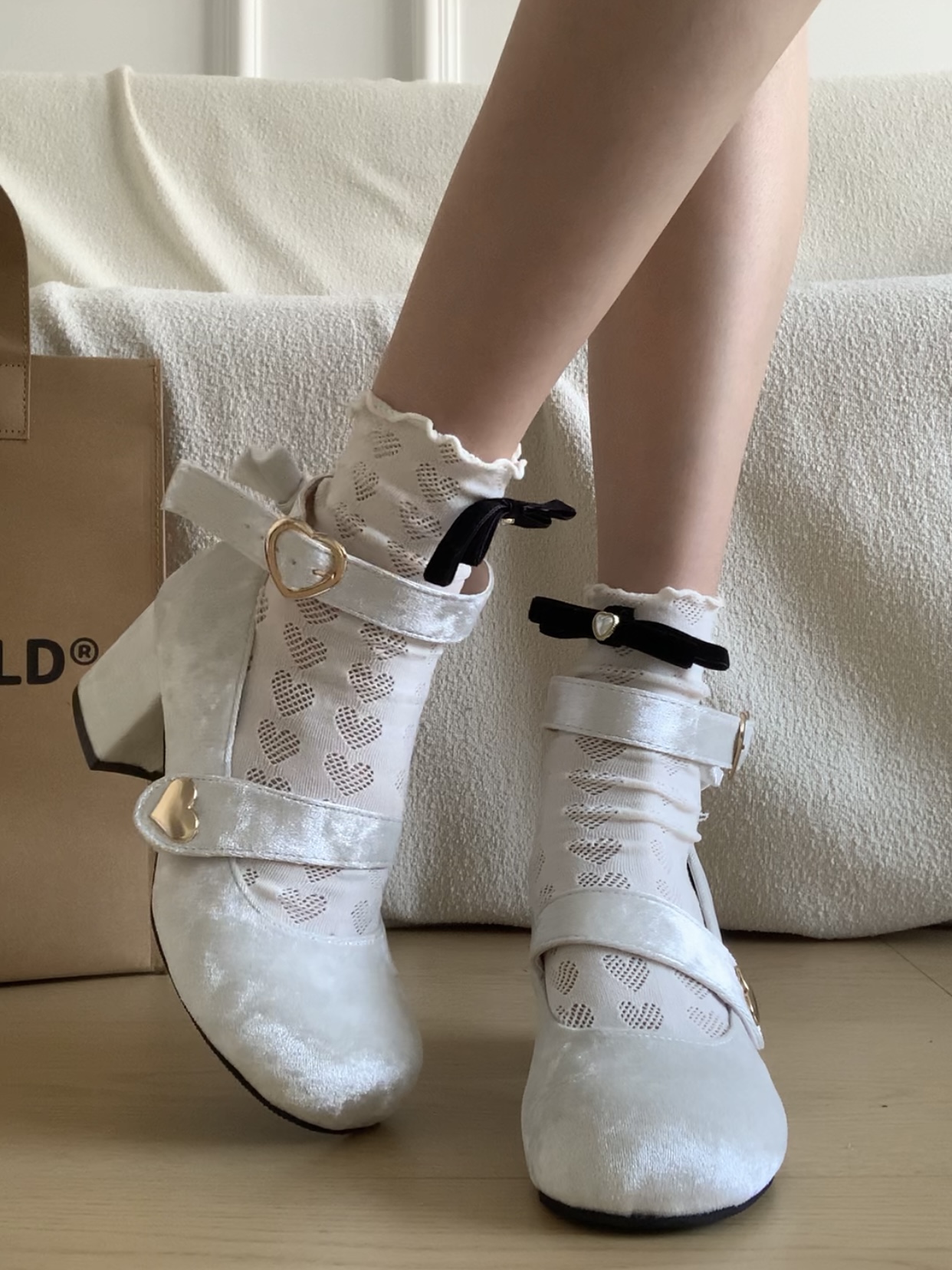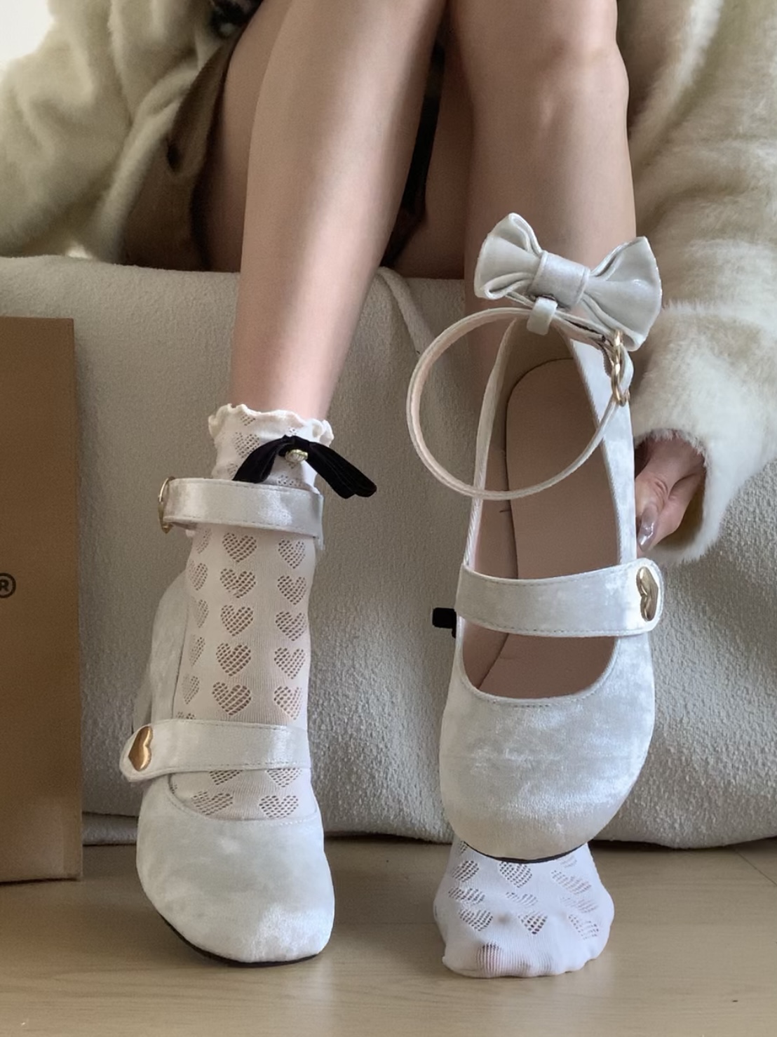 Бархатная милая подходит с юбкой с бантиком, туфли на высоком каблуке, в стиле Шанель, стиль Лолита