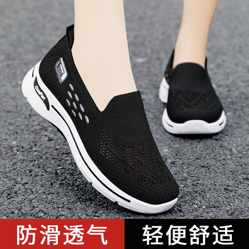 Летние слипоны, спортивная спортивная обувь для отдыха для матери, для среднего возраста, мягкая подошва