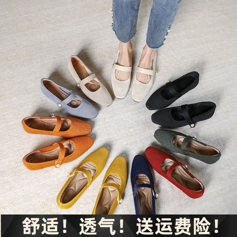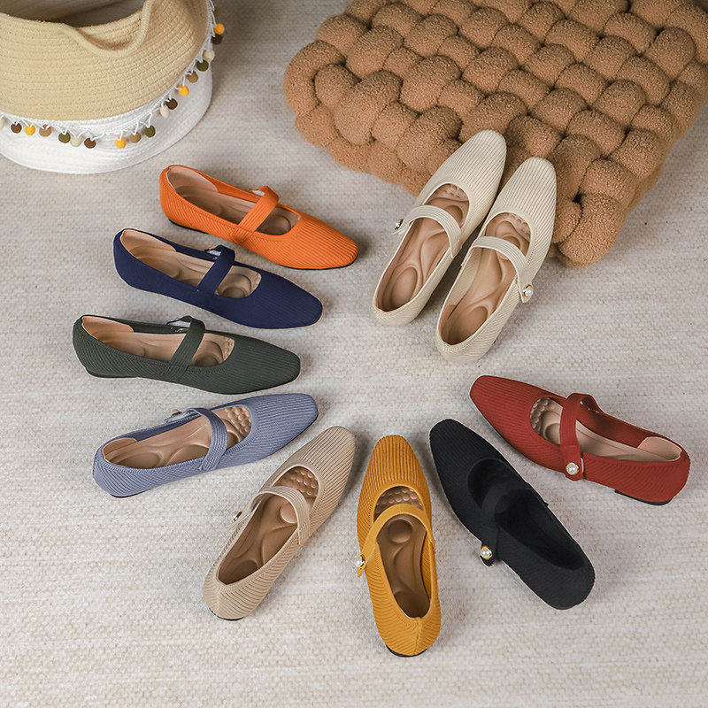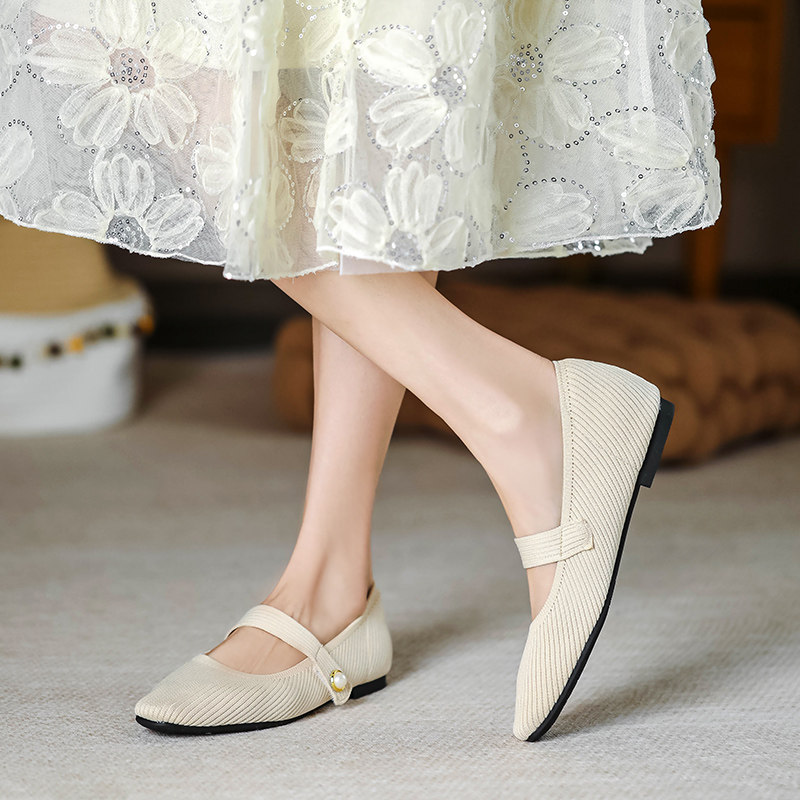 Японская принцесса обувь 2024 принести жемчужную Мэри Жен Жен вязаные туфли легкая рта.