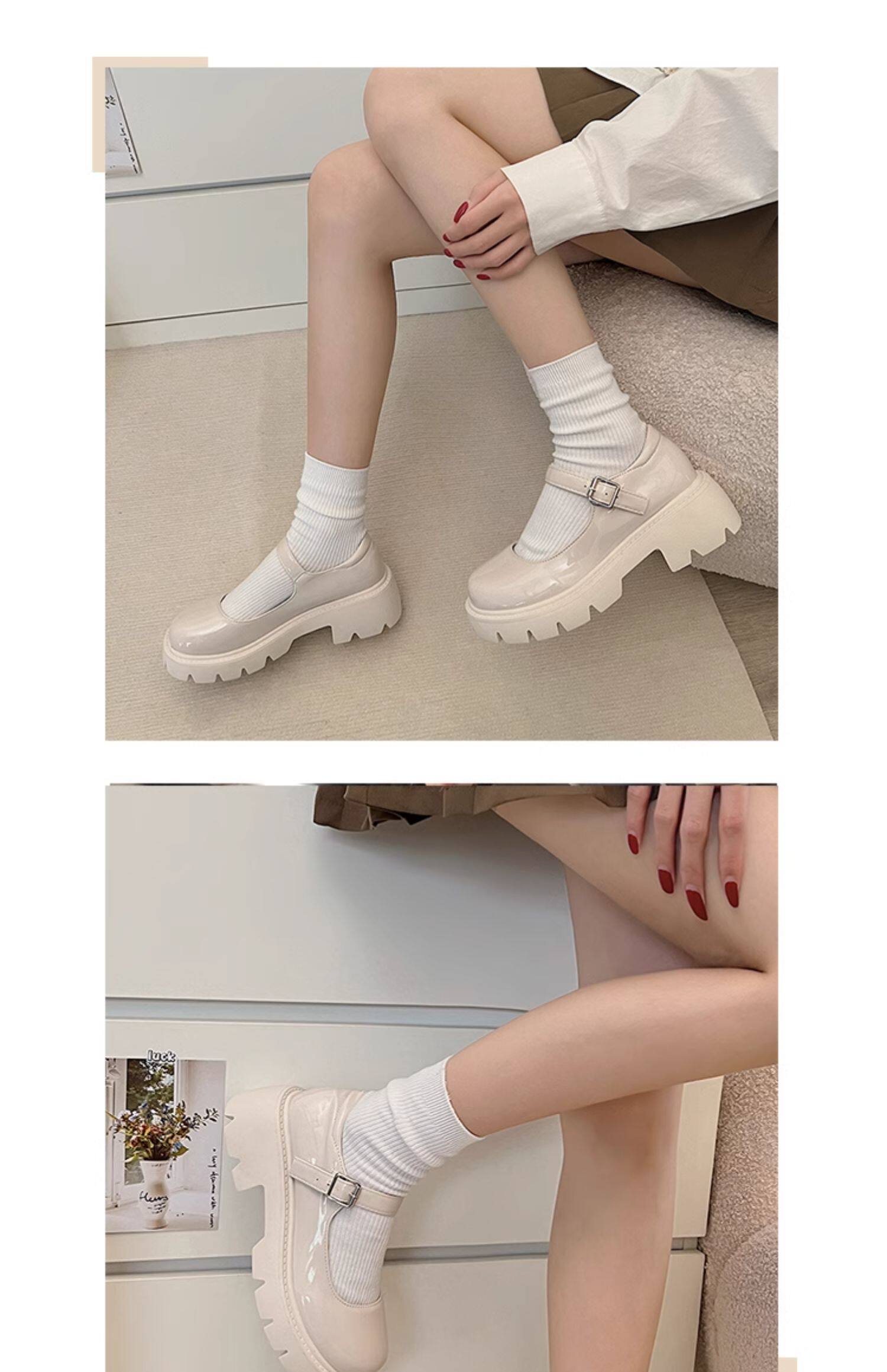 Обувь на платформе, весенняя летняя белая японская подходит с юбкой для кожаной обуви