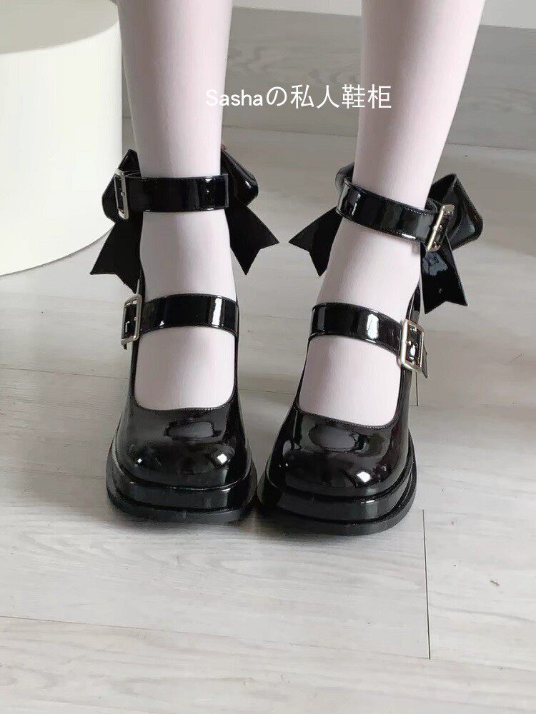 Черная водонепроницаемая защитная застежка с бабочкой, обувь на высоком каблуке на платформе, туфли, стиль Лолита
