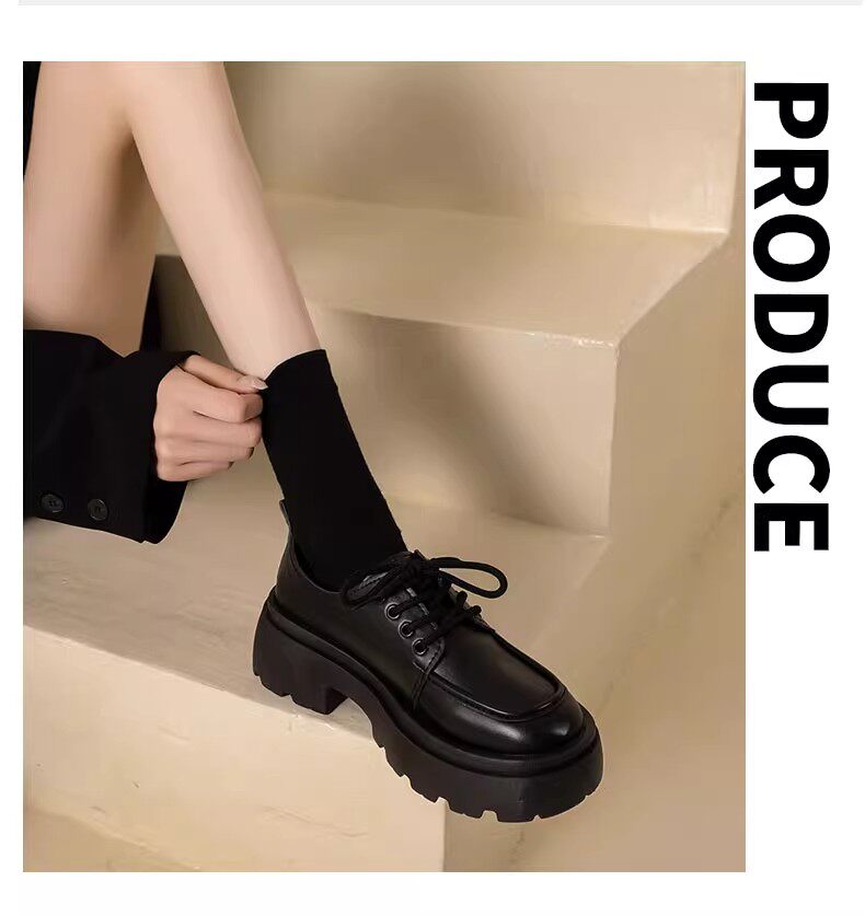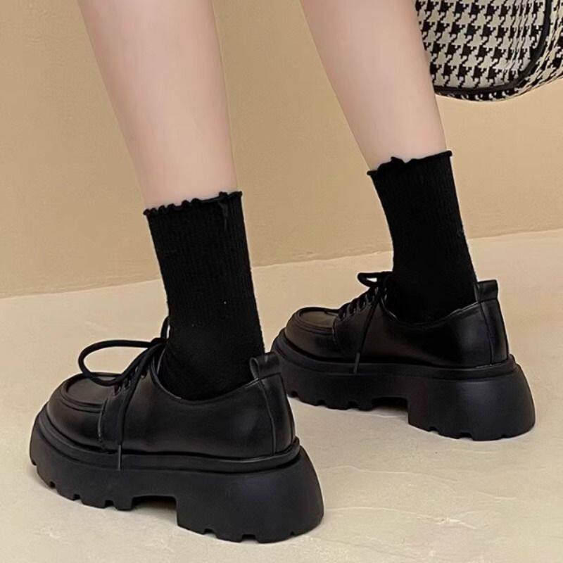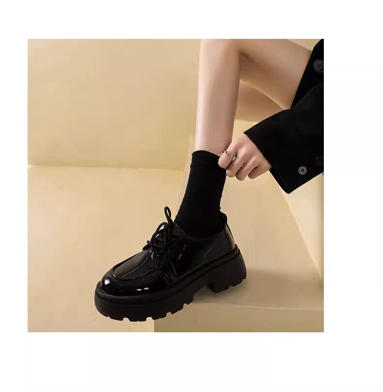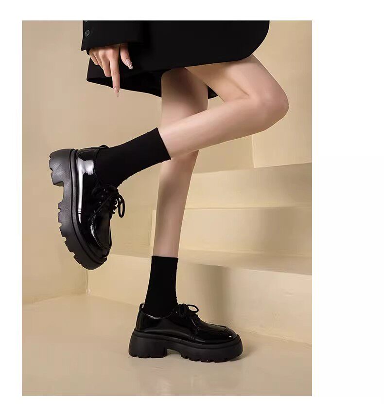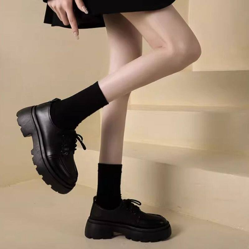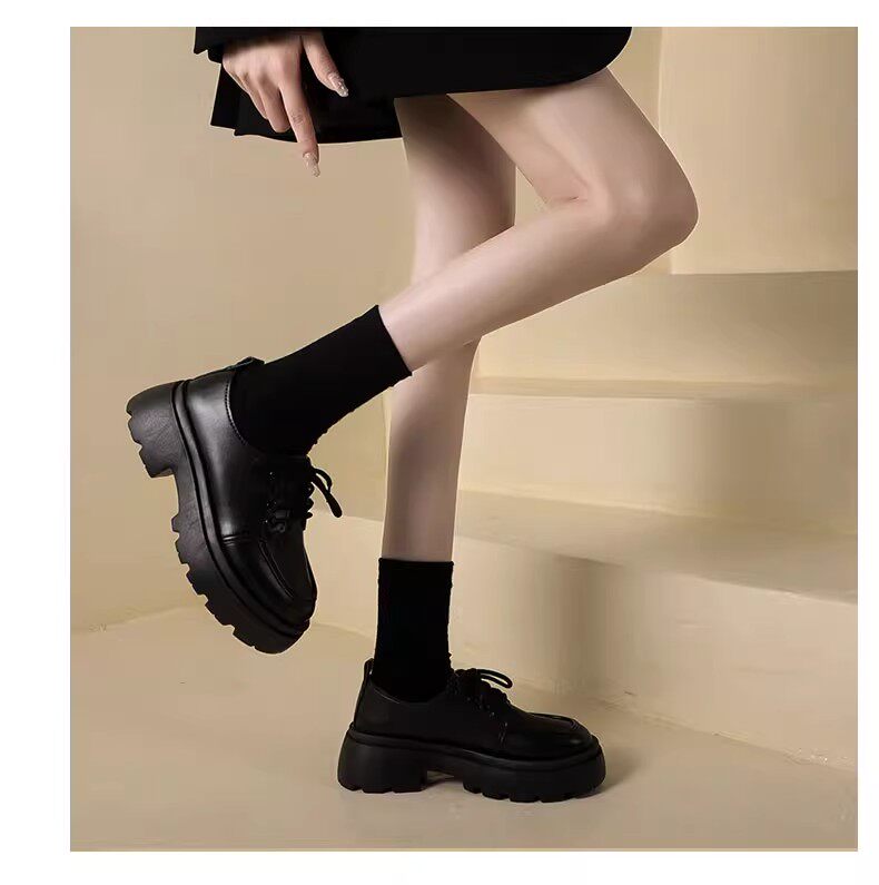 Универсальная летняя обувь в английском стиле для кожаной обуви на платформе, черные высокие матовые лоферы, в британском стиле, французский ретро стиль