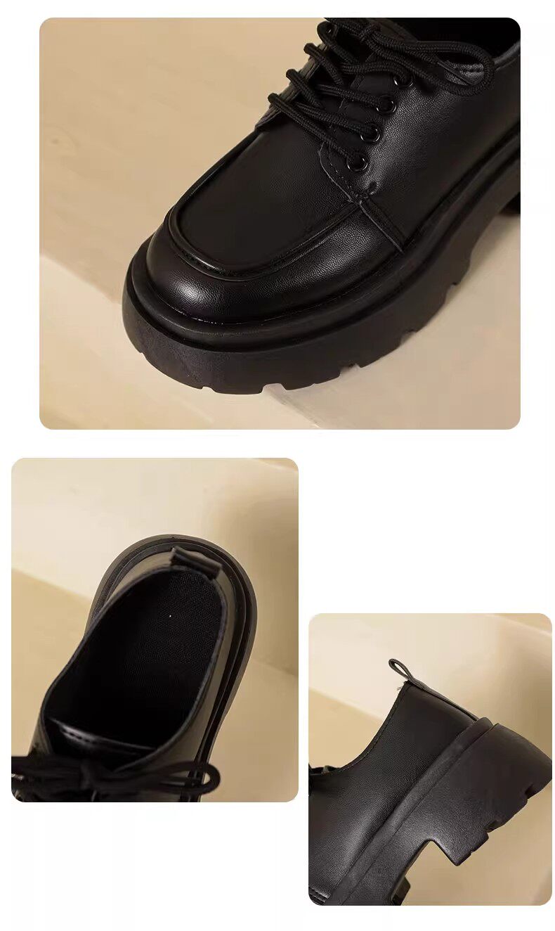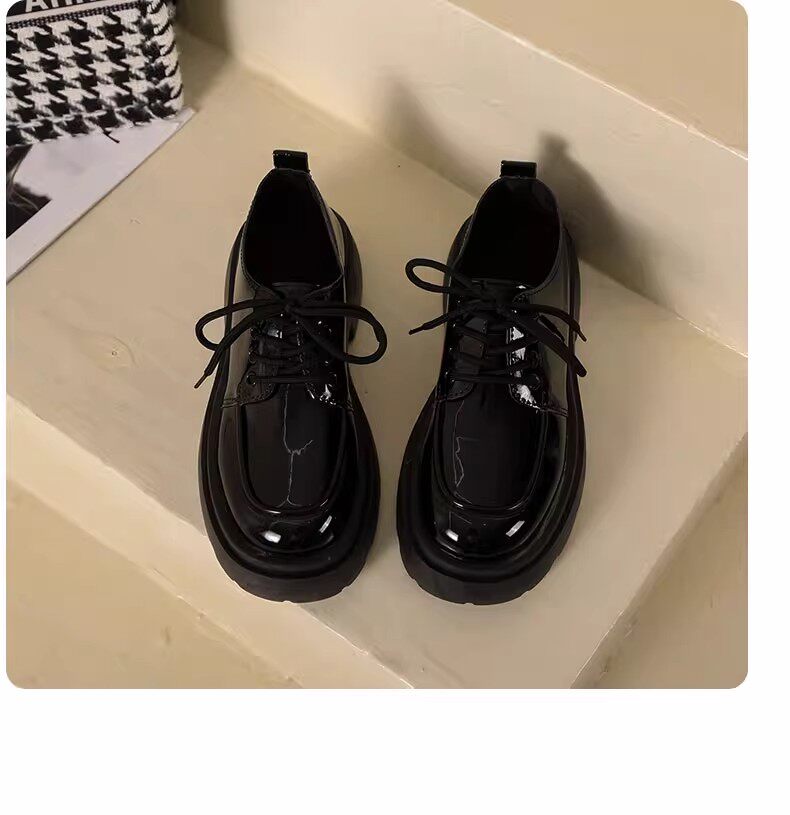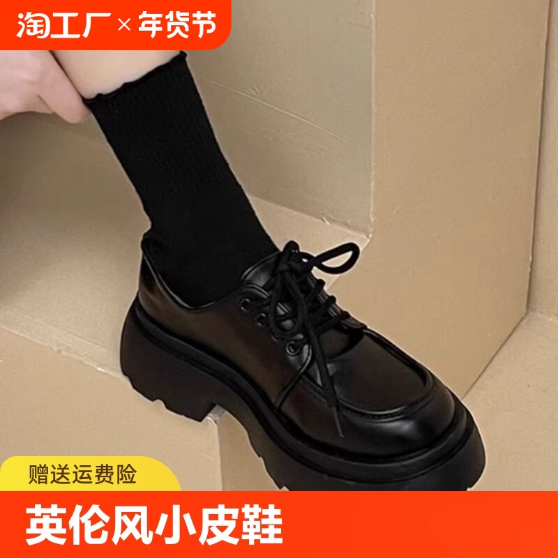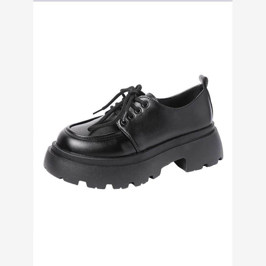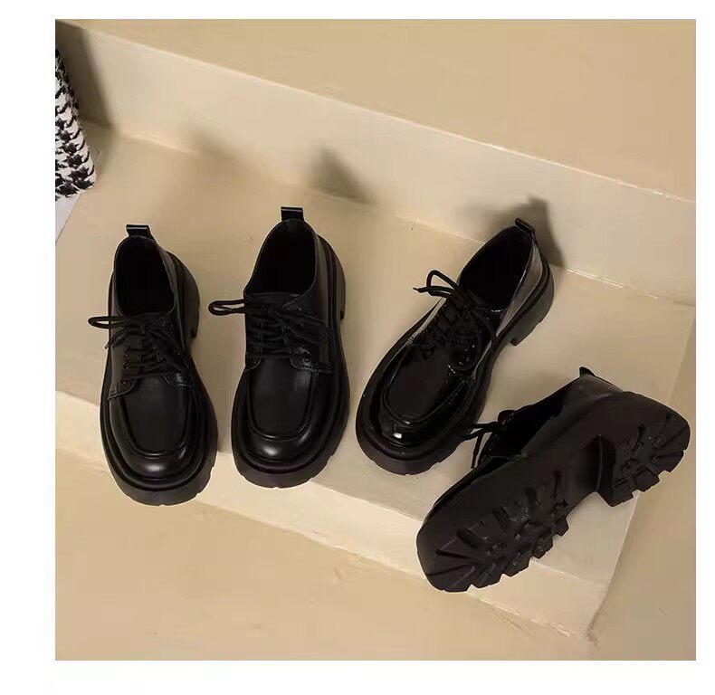 Универсальная летняя обувь в английском стиле для кожаной обуви на платформе, черные высокие матовые лоферы, в британском стиле, французский ретро стиль