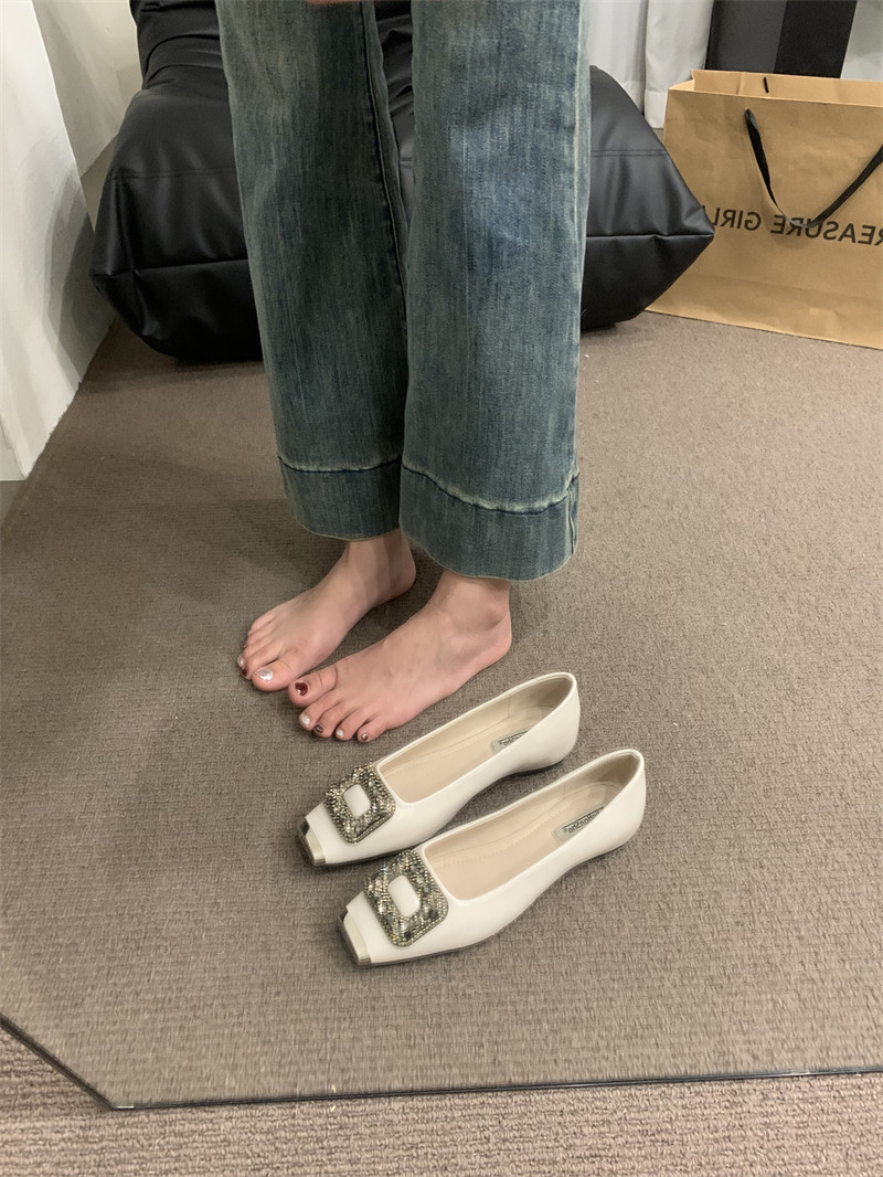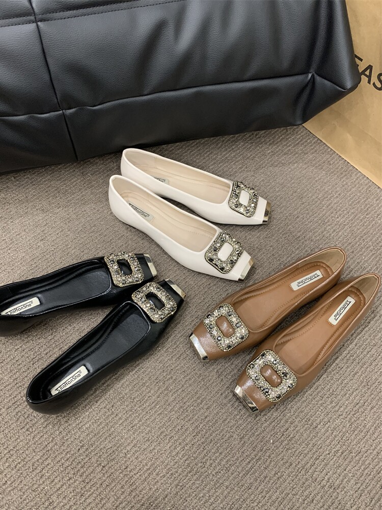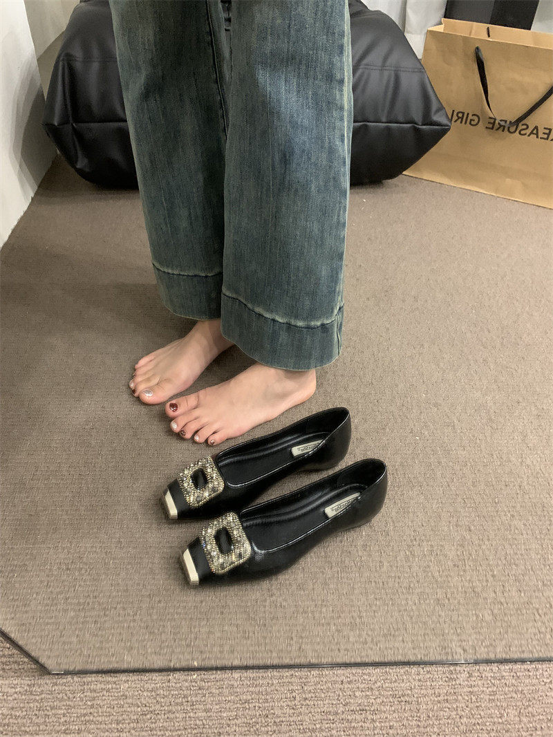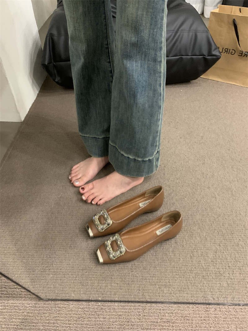 Женские туфли в стиле ретро с квадратным носком и внутренней частью, весна 2024, новый стиль, туфли из натуральной кожи с квадратной пряжкой и стразами, новые туфли на плоской подошве в китайском стиле